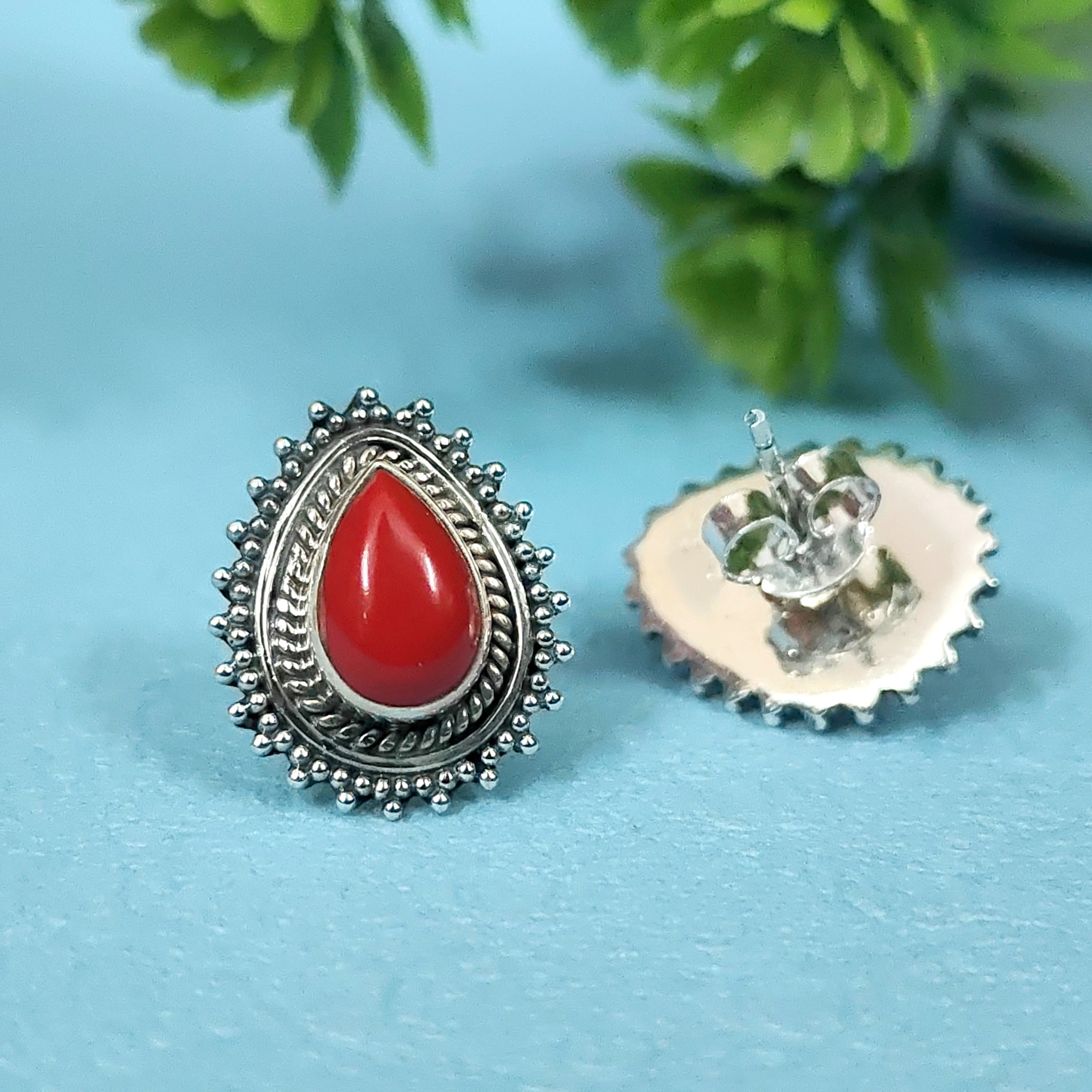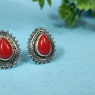 Add a bold touch of elegance to your collection with our CORAL RED 92.5 Sterling Silver Stud Earrings, exclusively from Sanvi Jewels. Handcrafted in certified 92.5 sterling silver, these earrings feature a teardrop red stone centerpiece, surrounded by fine oxidized detailing for a classic ethnic charm.