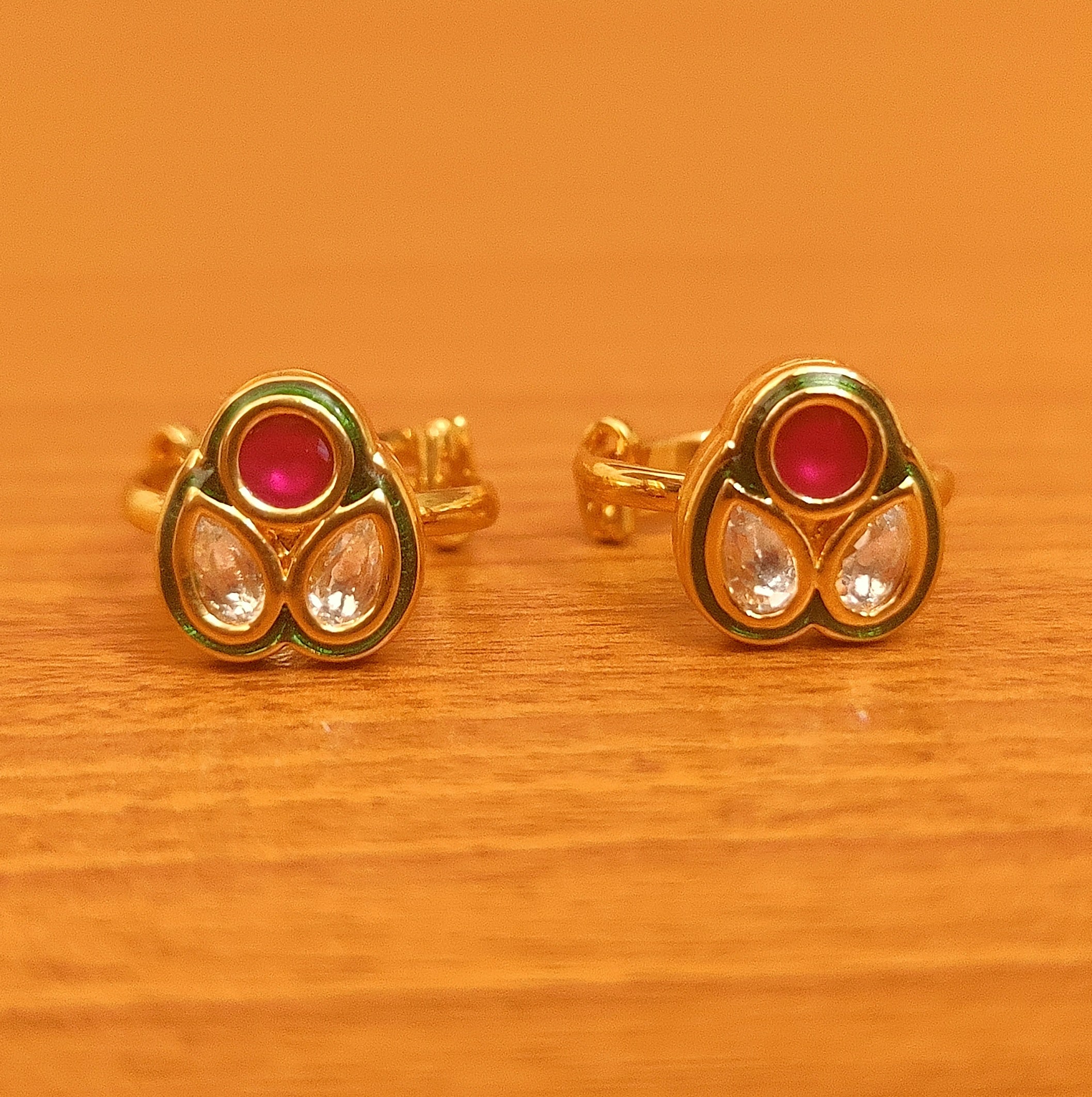 This beautiful toering is handcrafted in brass alloy with imitation red colour stone & cz stone and kundan work of very fine quality , this toering is coated with 18 kt nickle free gold plating to avoid skin allergies and its very light in weight .