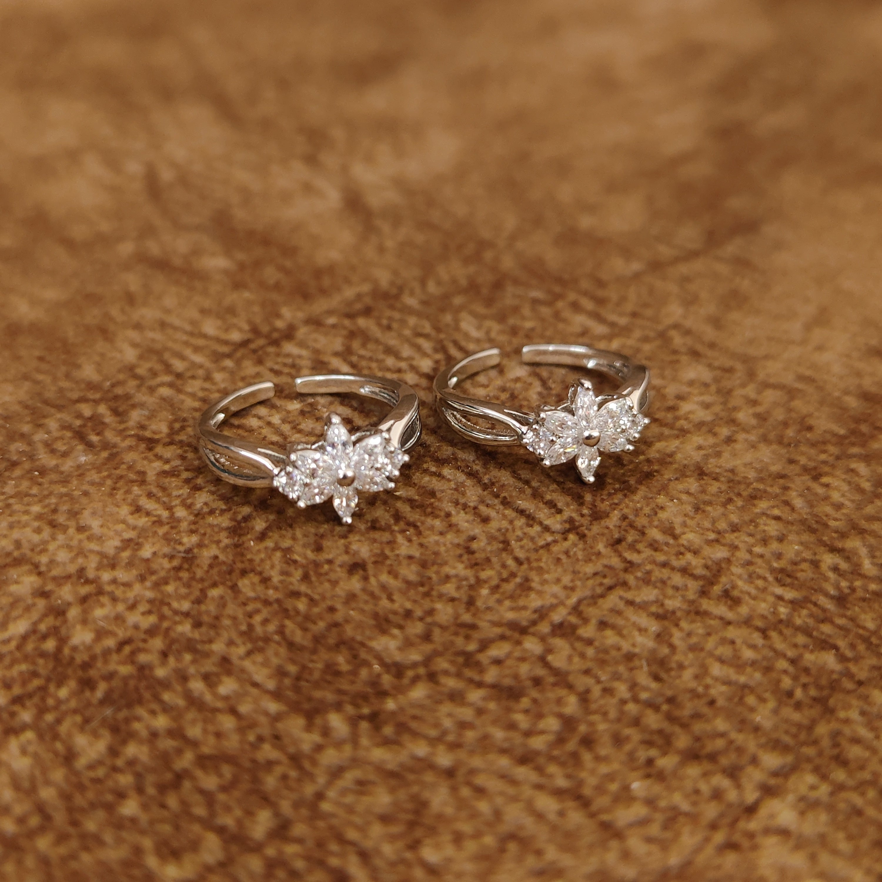 SILVER PLATED DIAMOND LOOK ADJUSTABLE TOE RINGS
