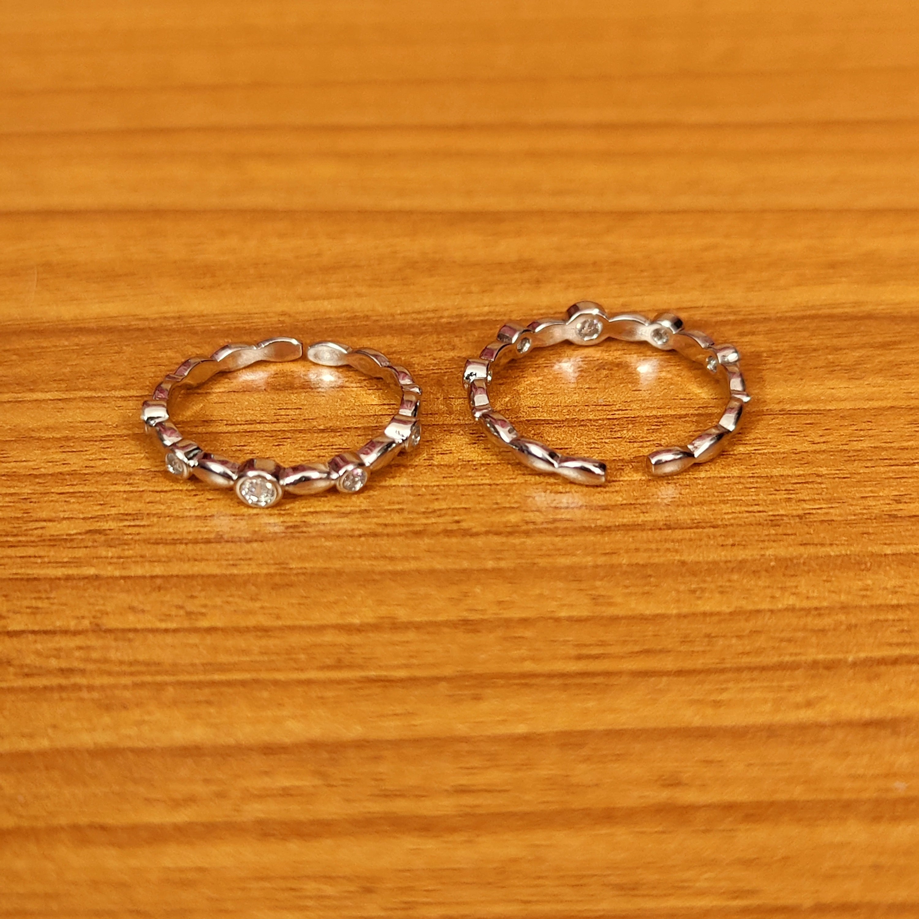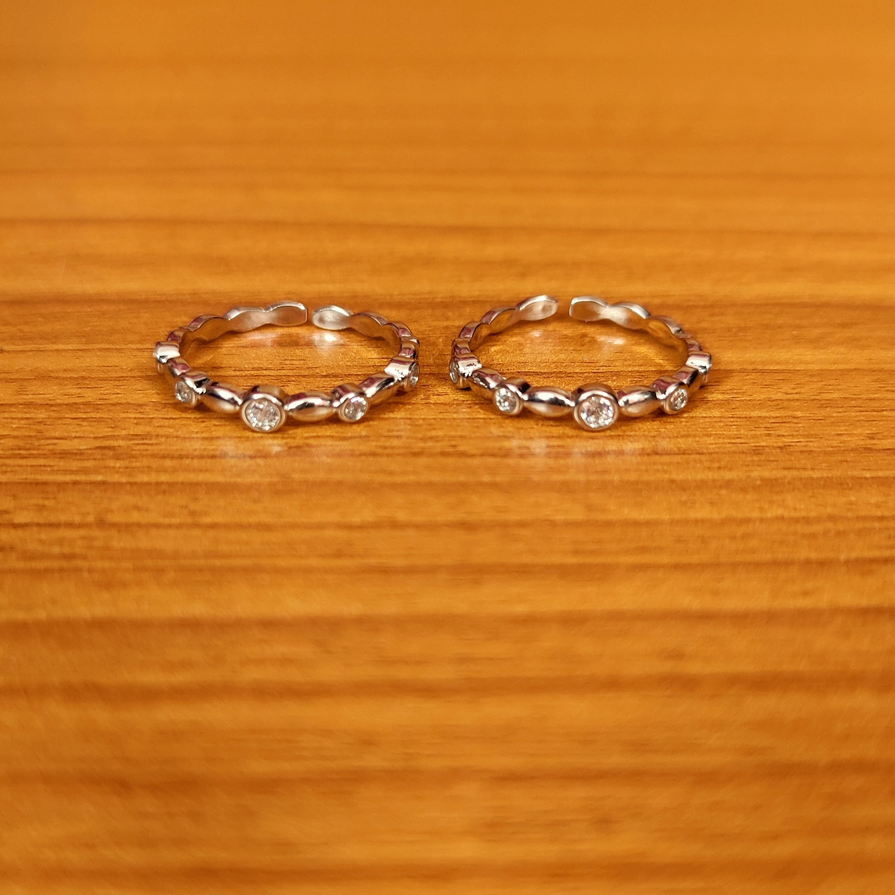 SILVER PLATED CZ STUDDED ADJUSTABLE TOE RING