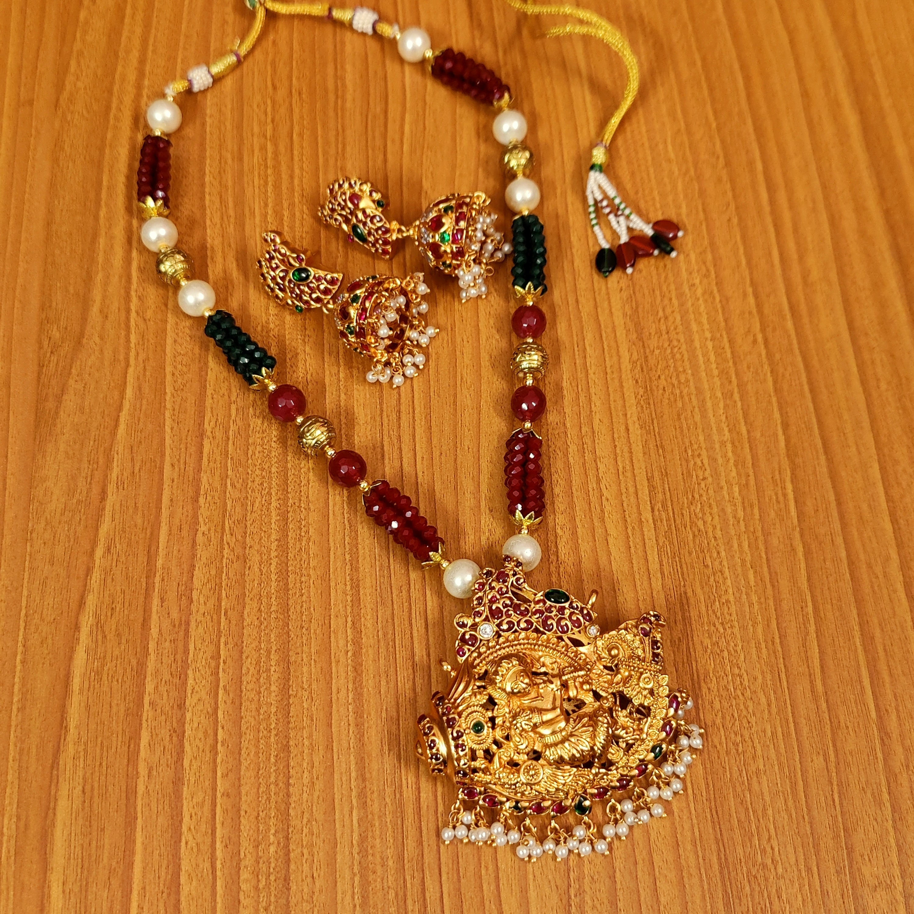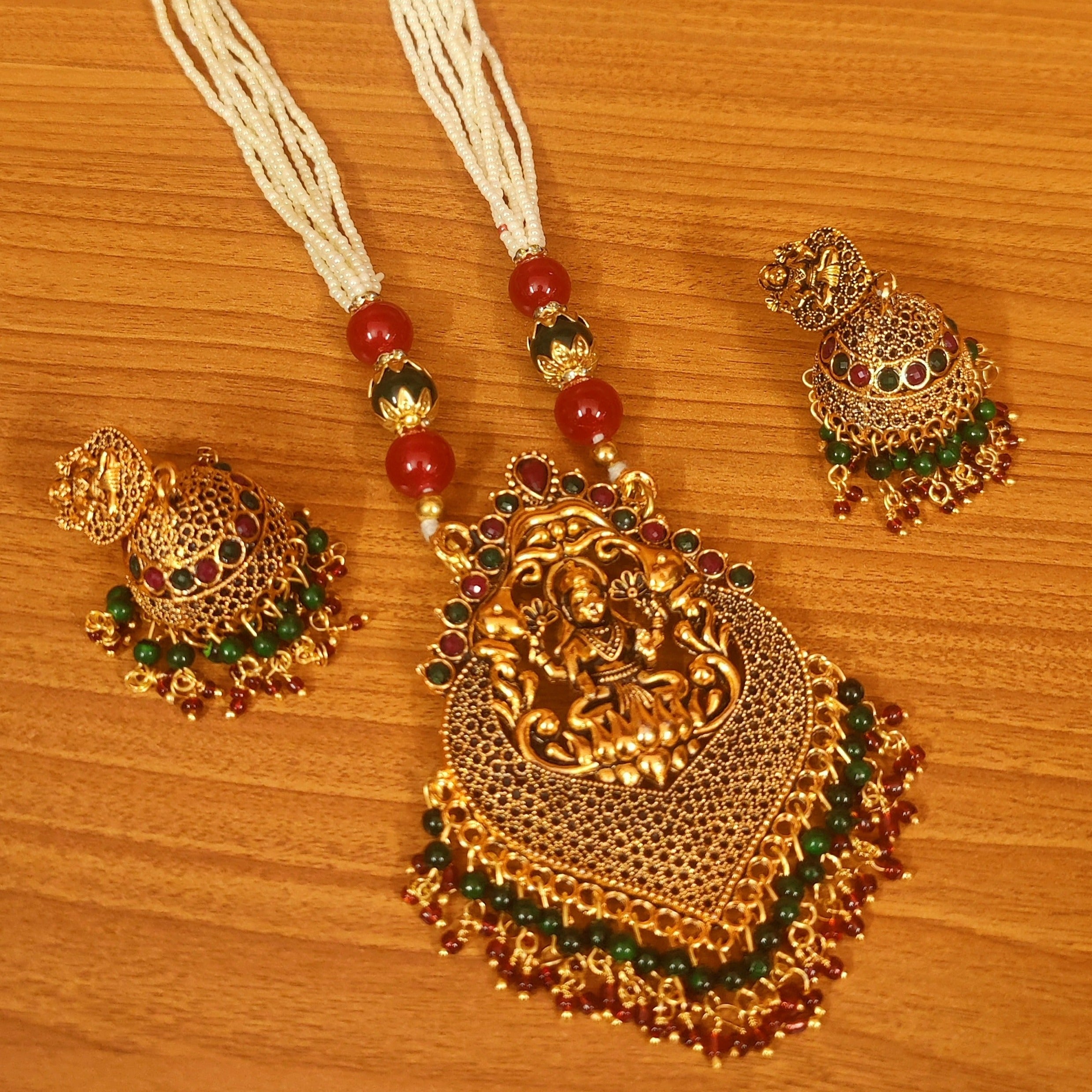 MULTICOLOUR LORD KRISHNA TEMPLE NECKLACE SET