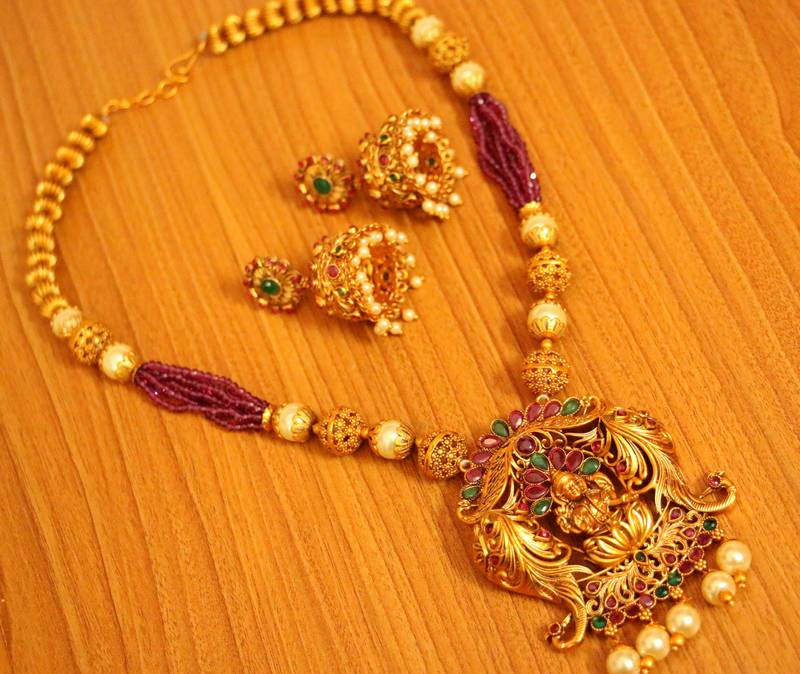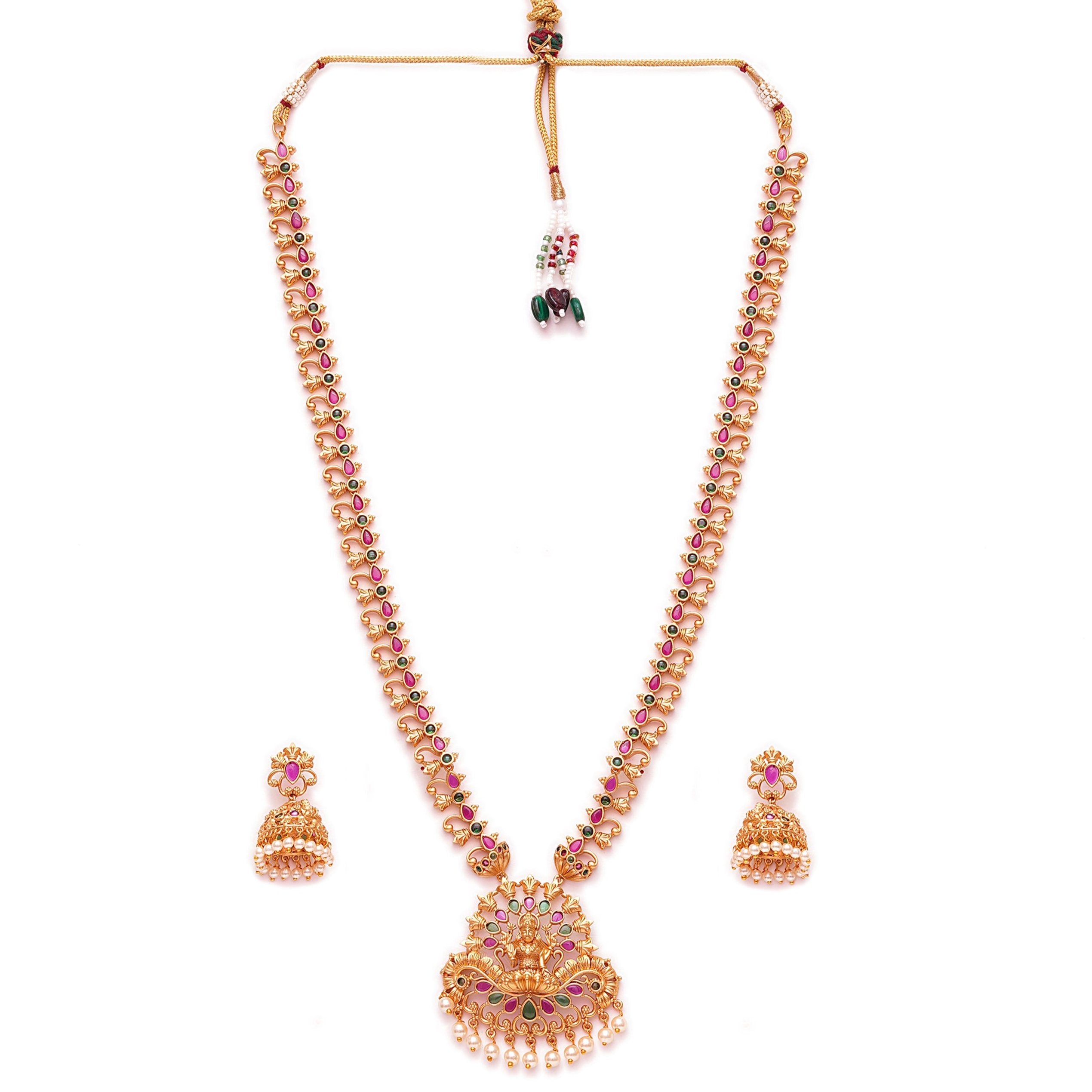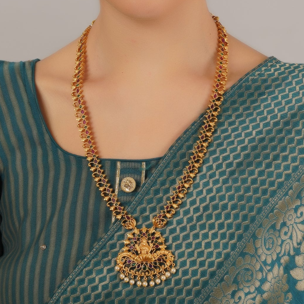 MATT GOLD PLATED TEMPLE LOOK LONG HARAM NECKLACE SET