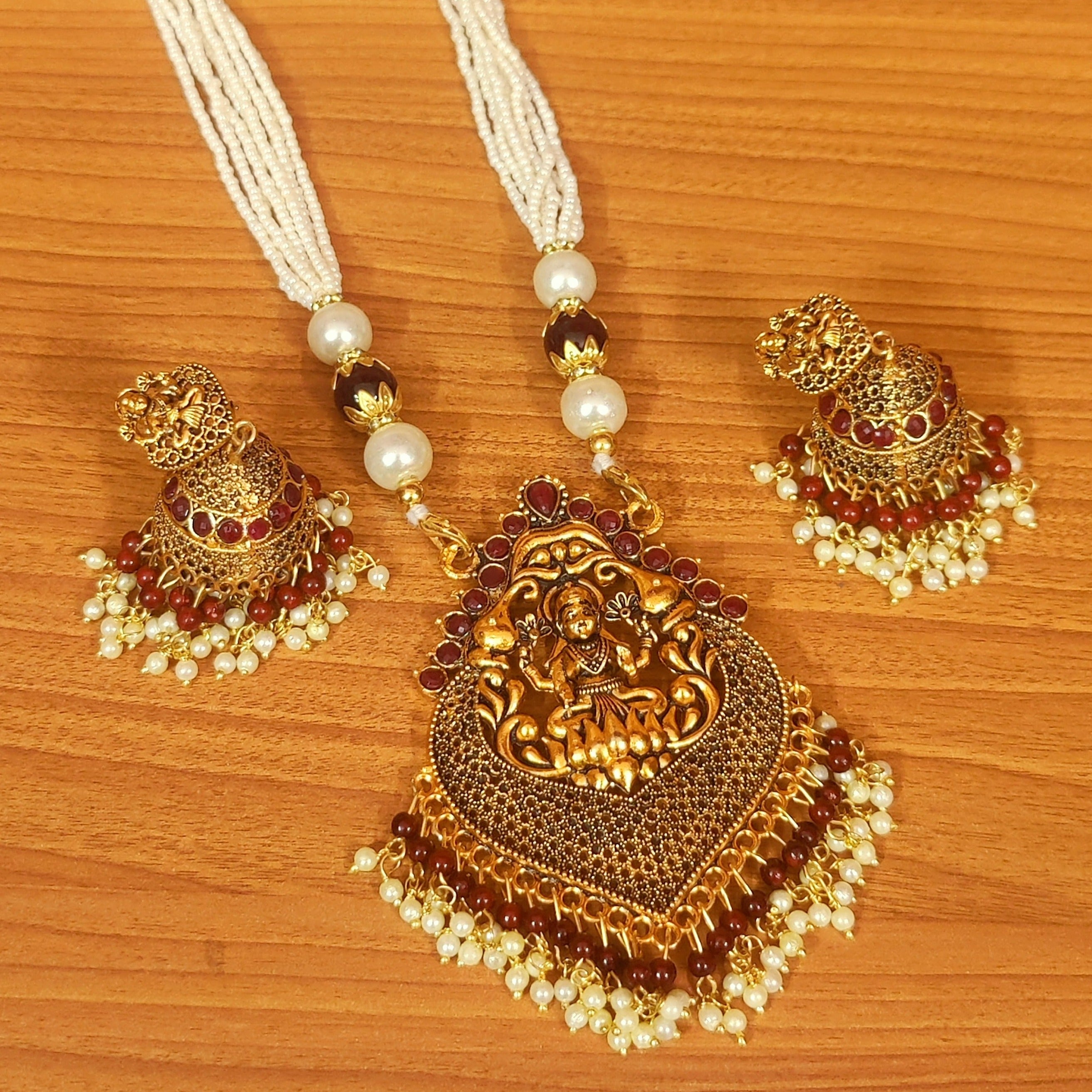 ANTIQUE GOLD PLATED TEMPLE LOOK PEARL NECKLACE SET