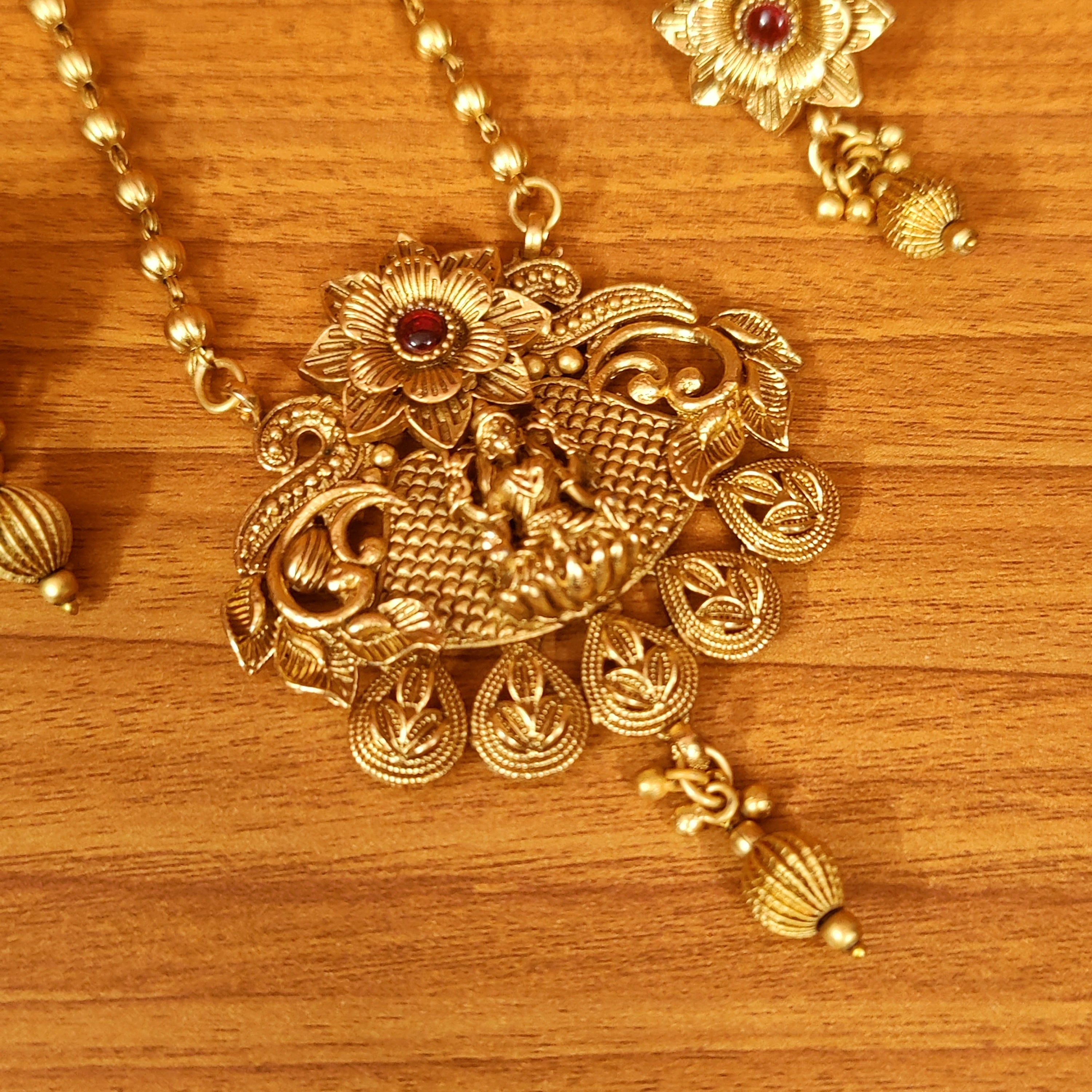 TEMPLE LOOK GOLD LOOKALIKE RUBY COLOUR PENDANT SET