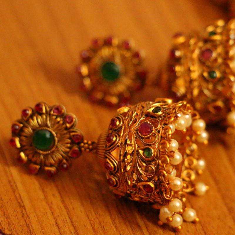 PEARL TEMPLE LOOK MATT GOLD LOOK JHUMKA'S