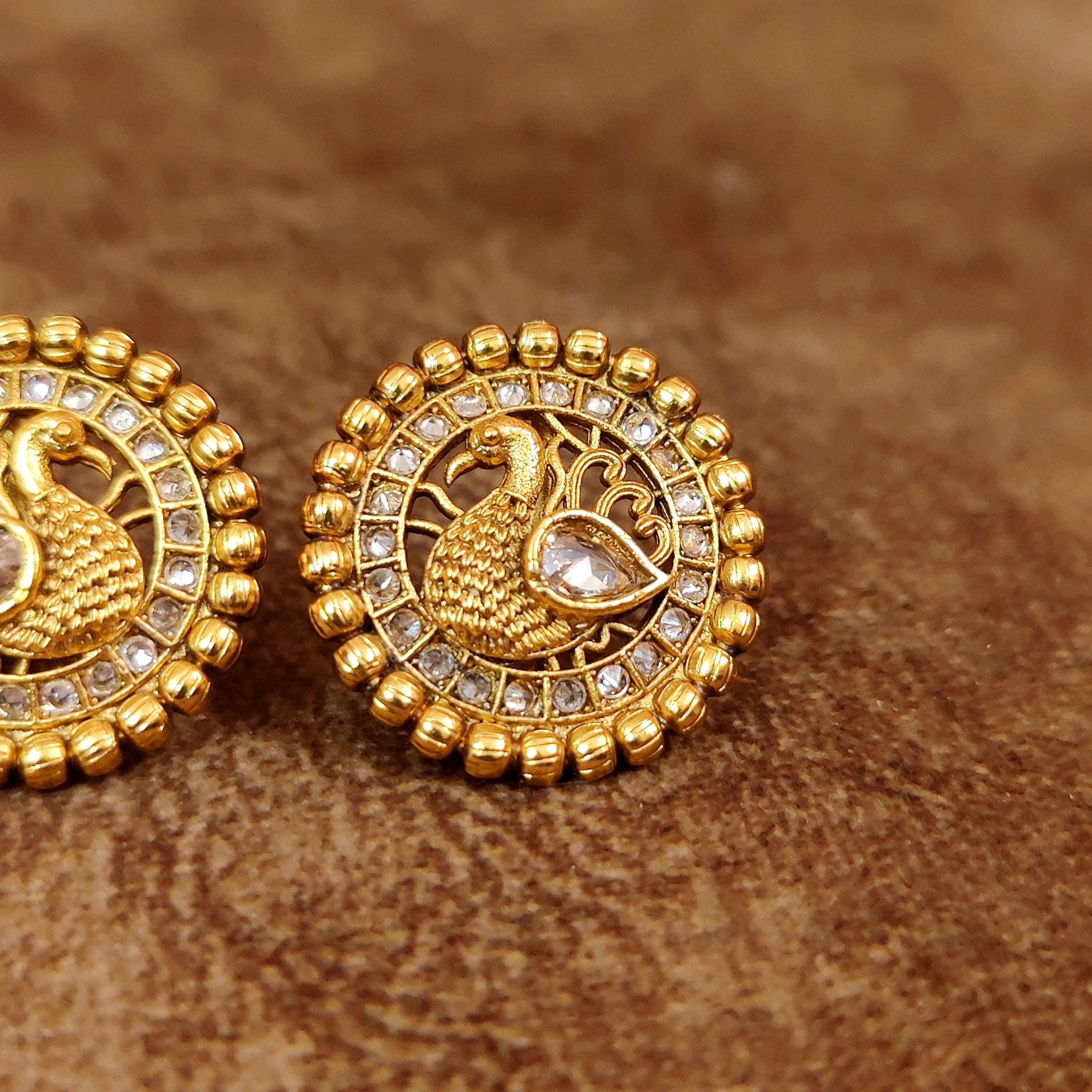 CZ POLKI GOLD PLATED PEACOCK STUDS