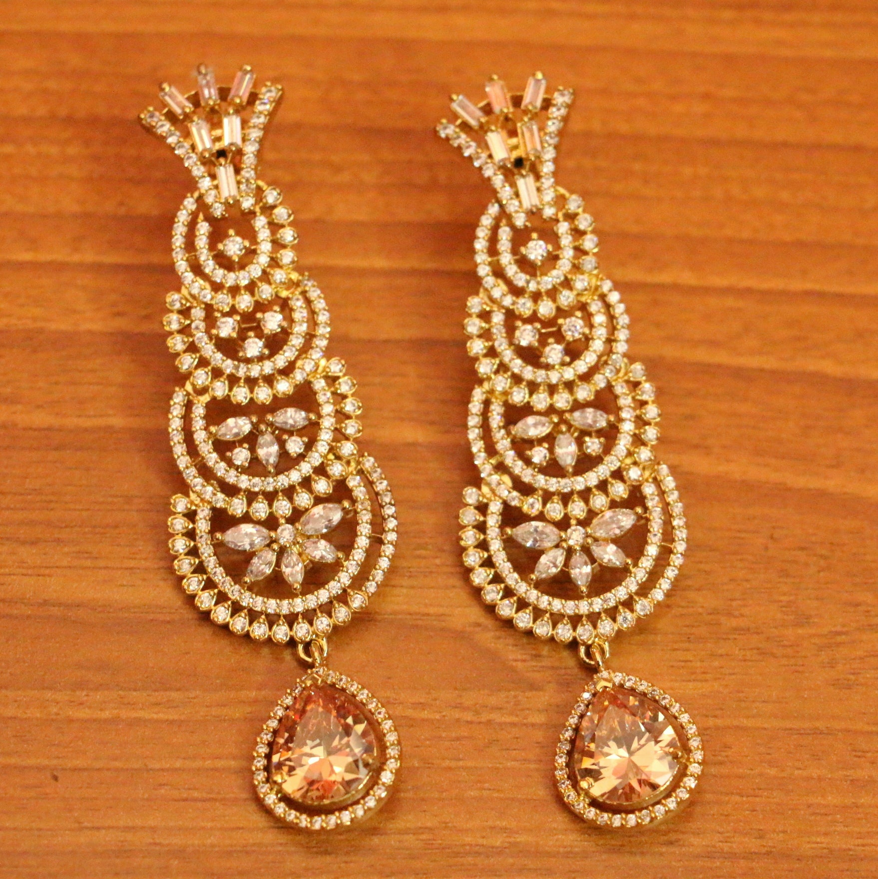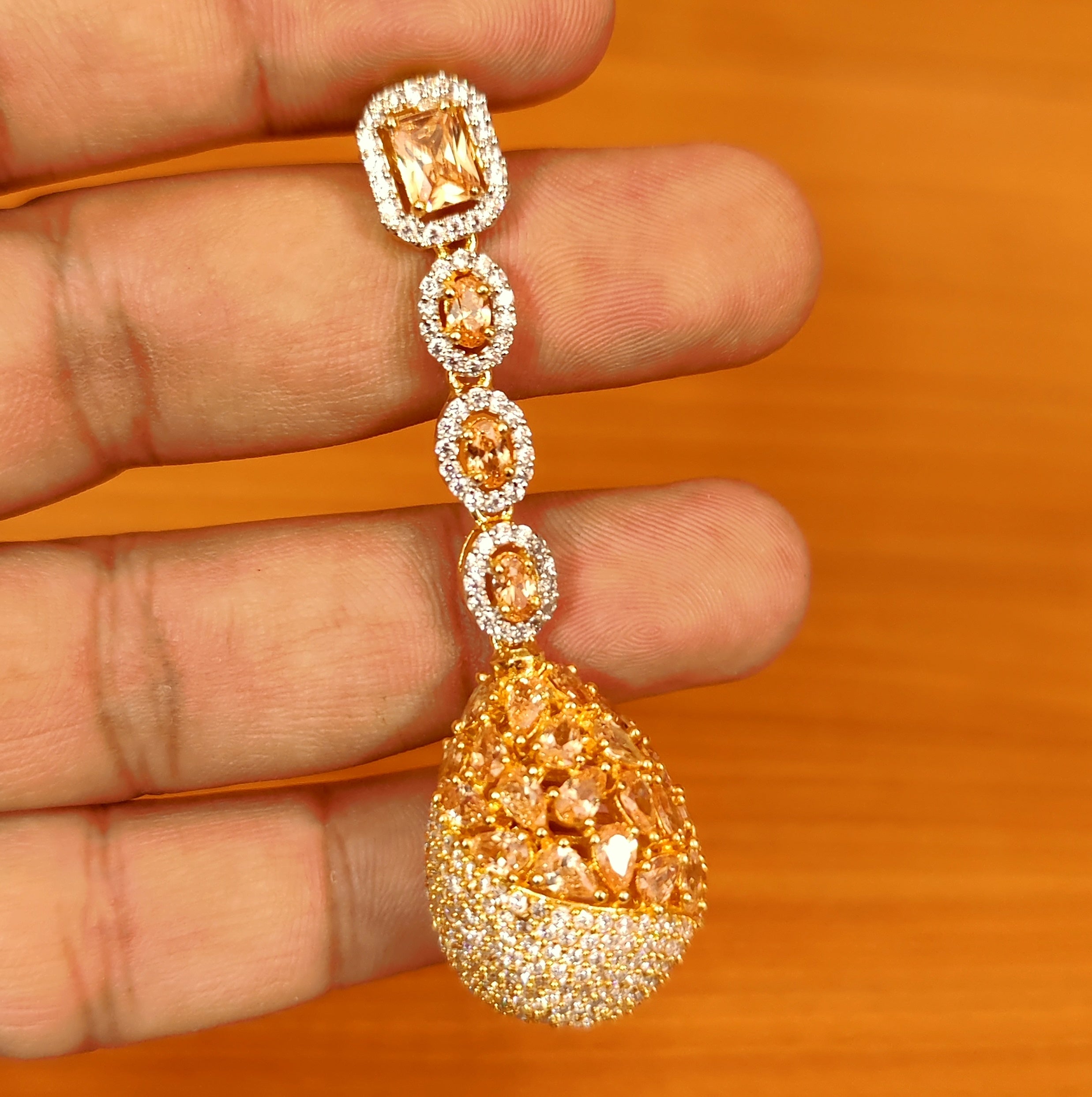 CITRINE STONE DIAMOND LOOK LONG DANGLERS