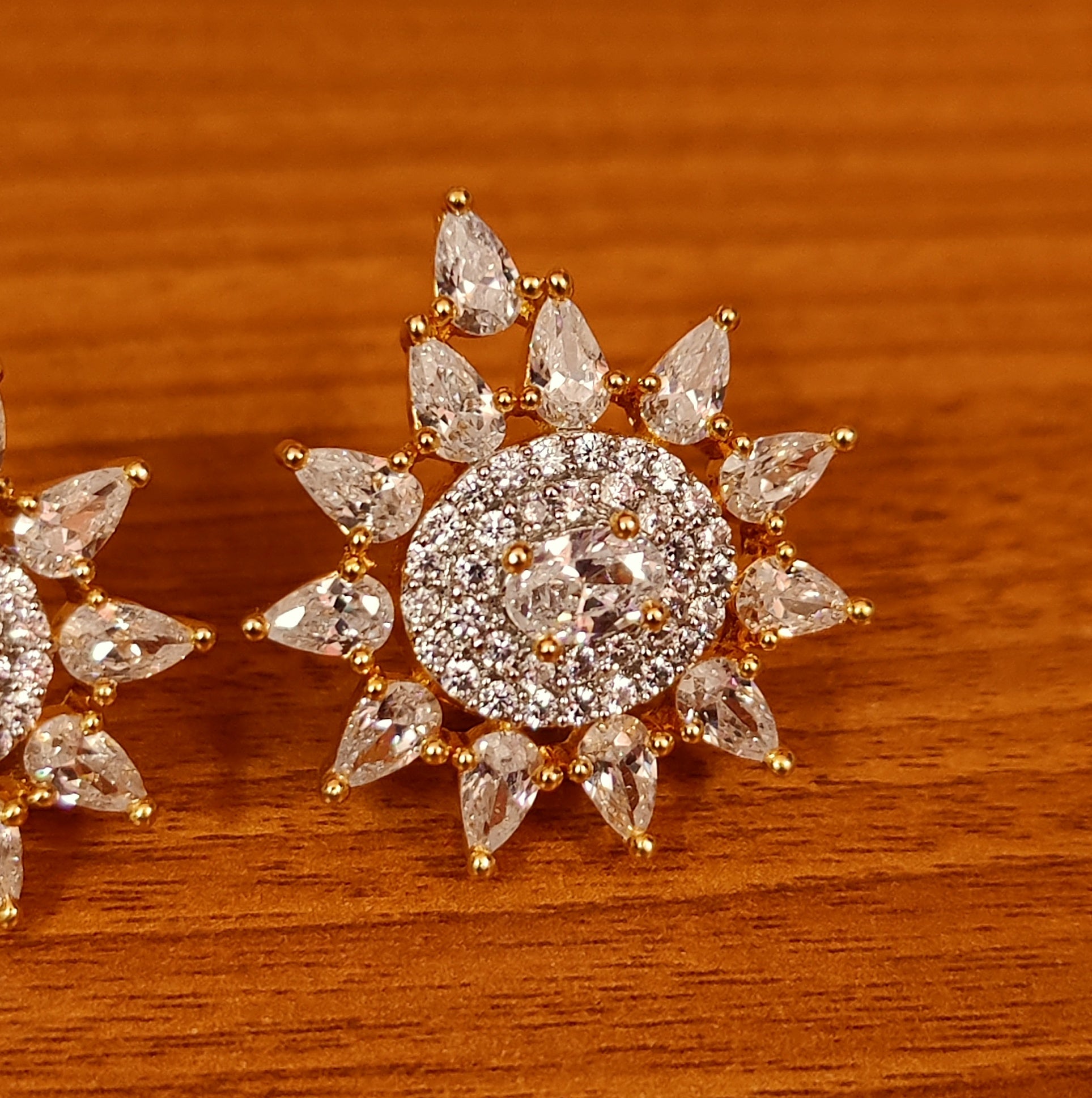 CZ STUDDED DIAMOND LOOK GOLD PLATED STUDS
