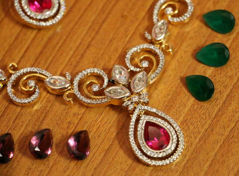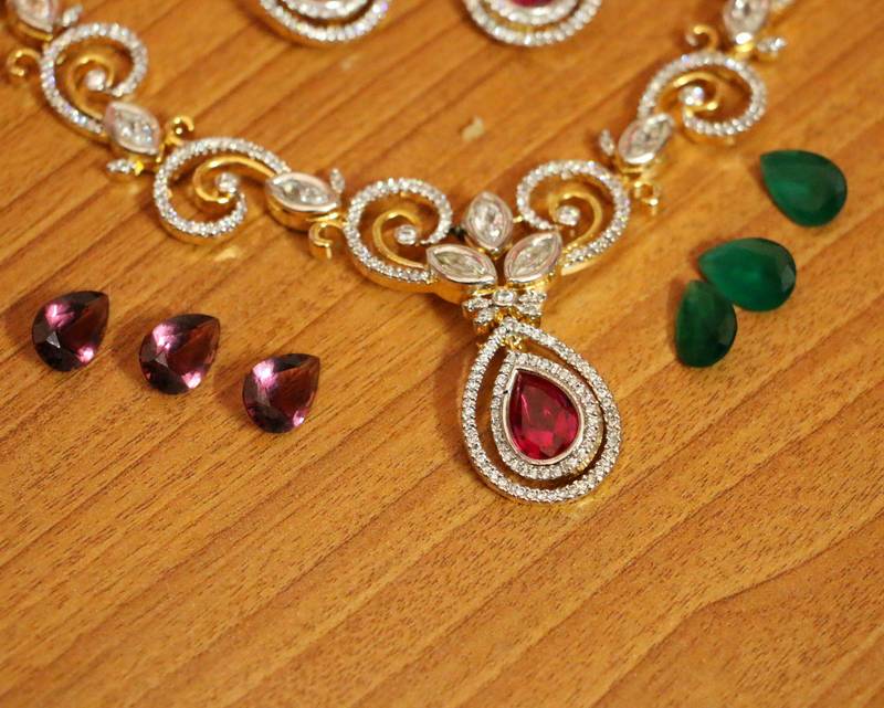 CZ STUDDED DIAMOND LOOK CAHNGEABLE STONES NECKLACE SET