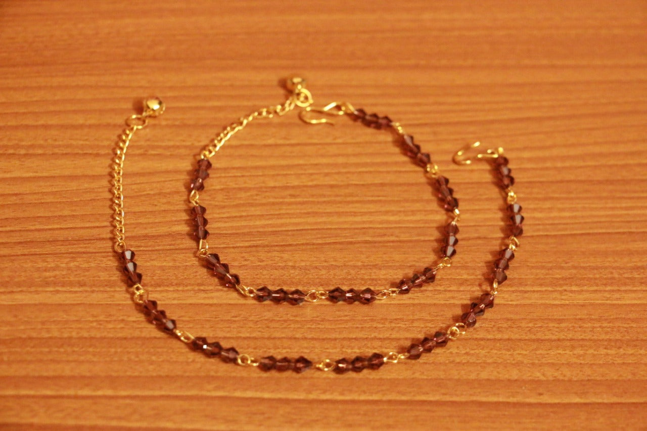 These anklets are handcrafted in copper alloy with imitation swarovski crystals of very fine quality , these anklets are very light in weight and plated with 18kt gold rhodium .