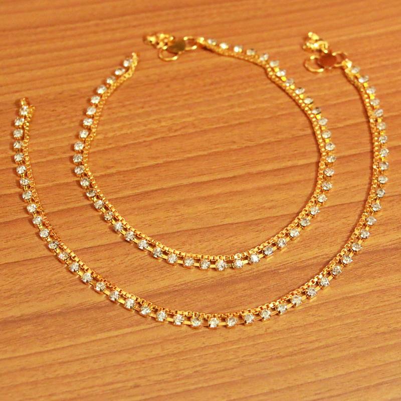 These beautiful anklets are handcrafted in copper alloy with imitation zircon stones of very fine quality. These anklets are very light in weight and are plated in gold rhodium .