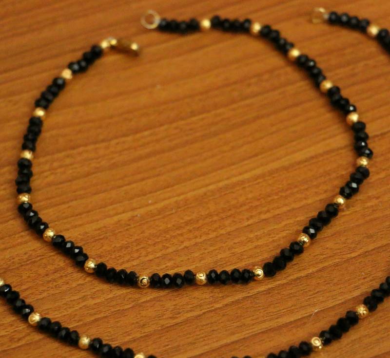 BLACK CRYSTAL & GOLD BEAD ANKLETS