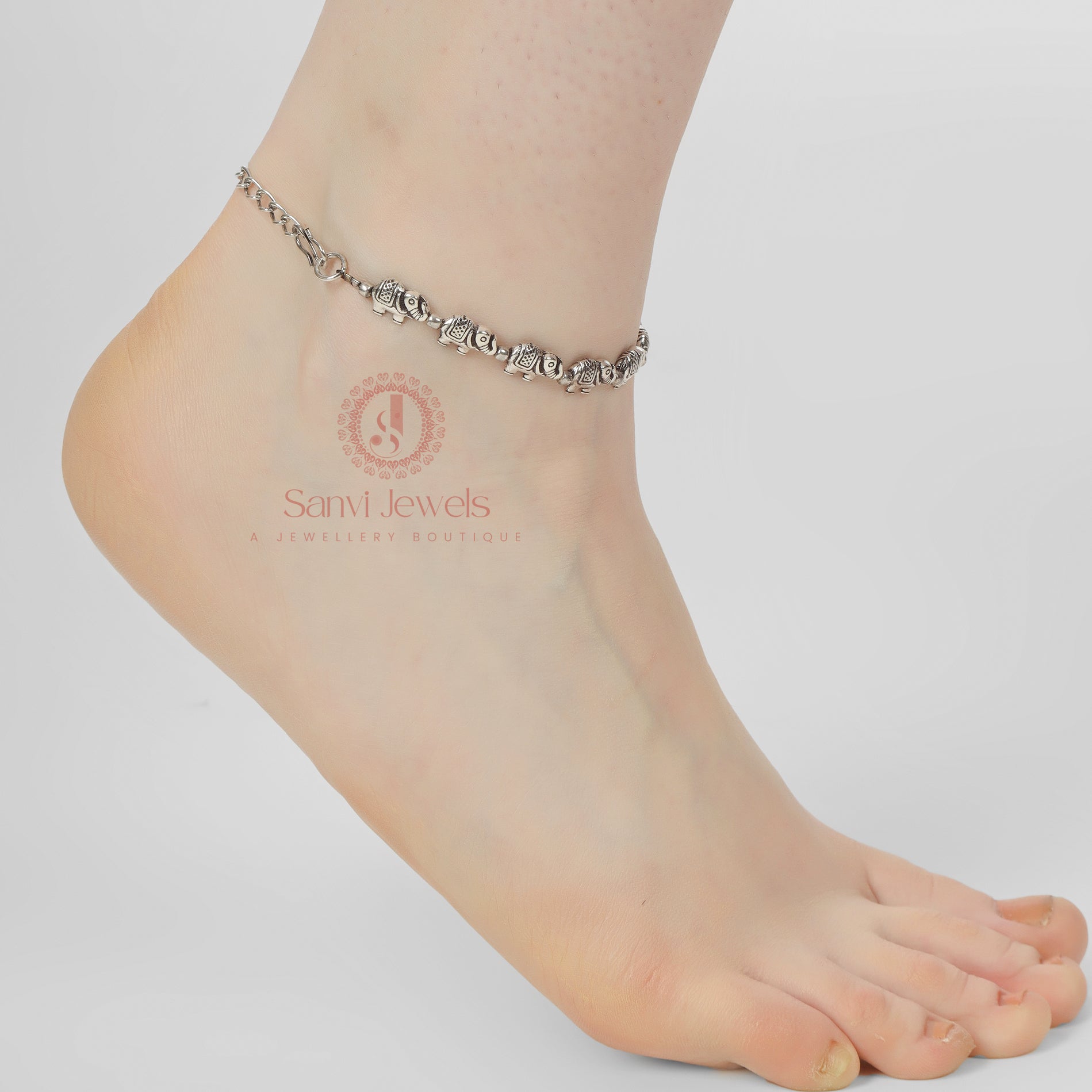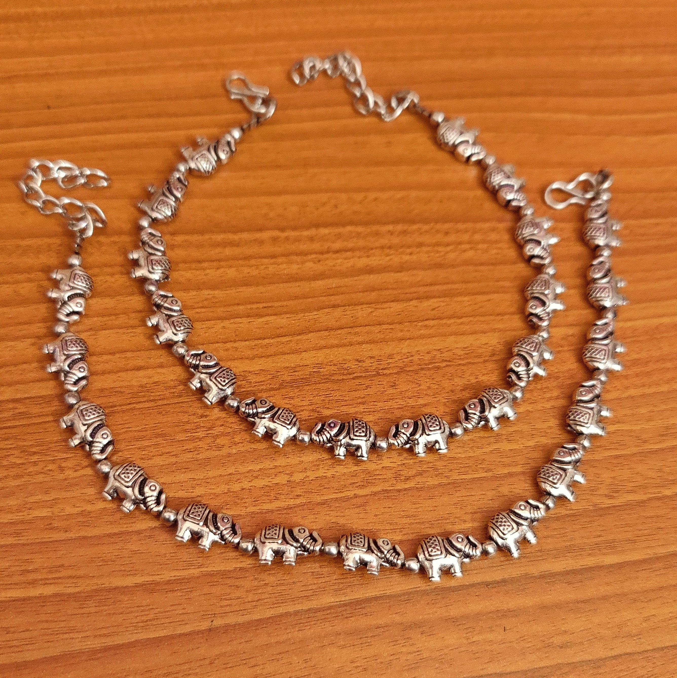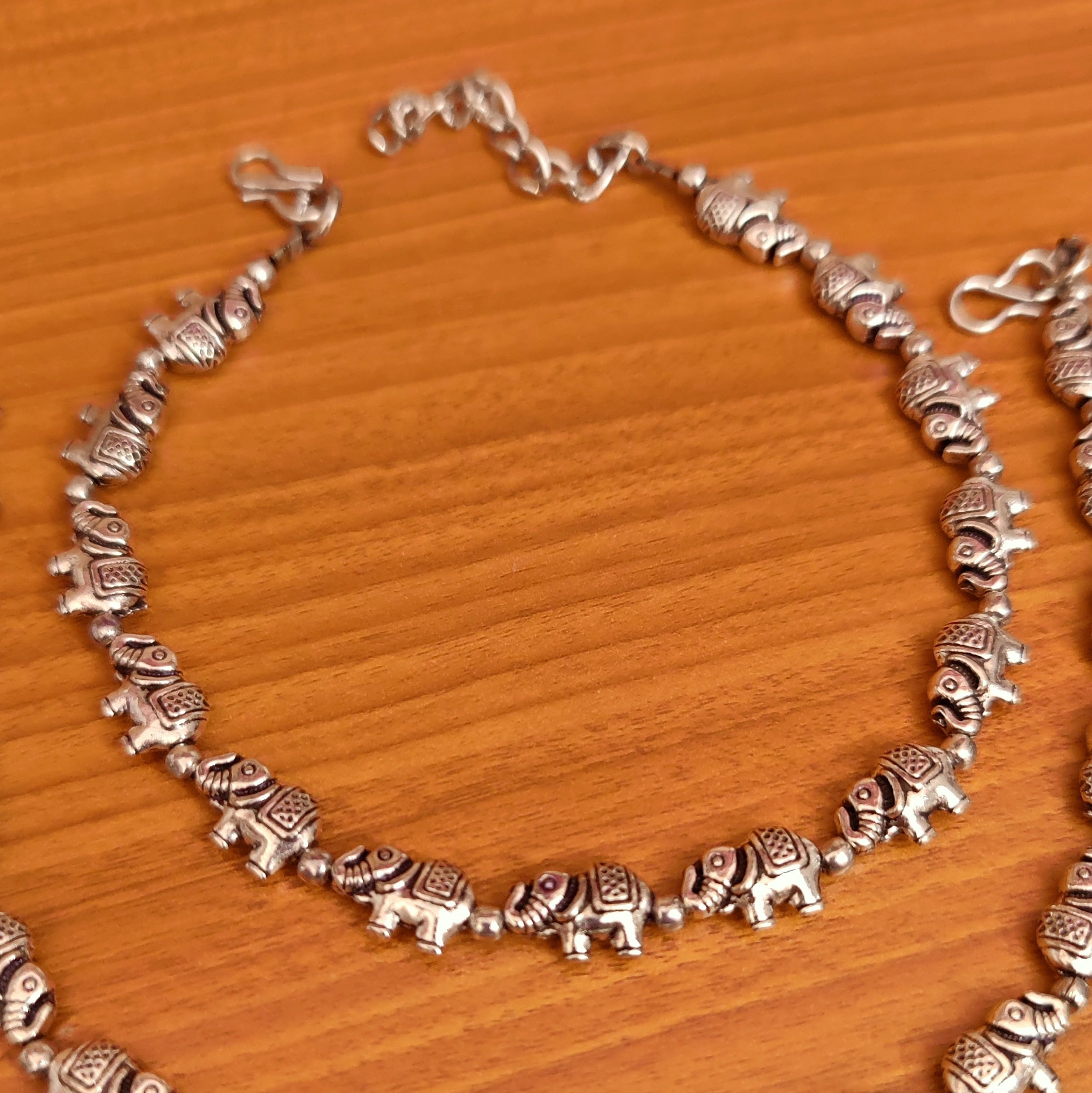 OXIDISED SILVER BABY ELEPHANT PATTERN ANKLETS