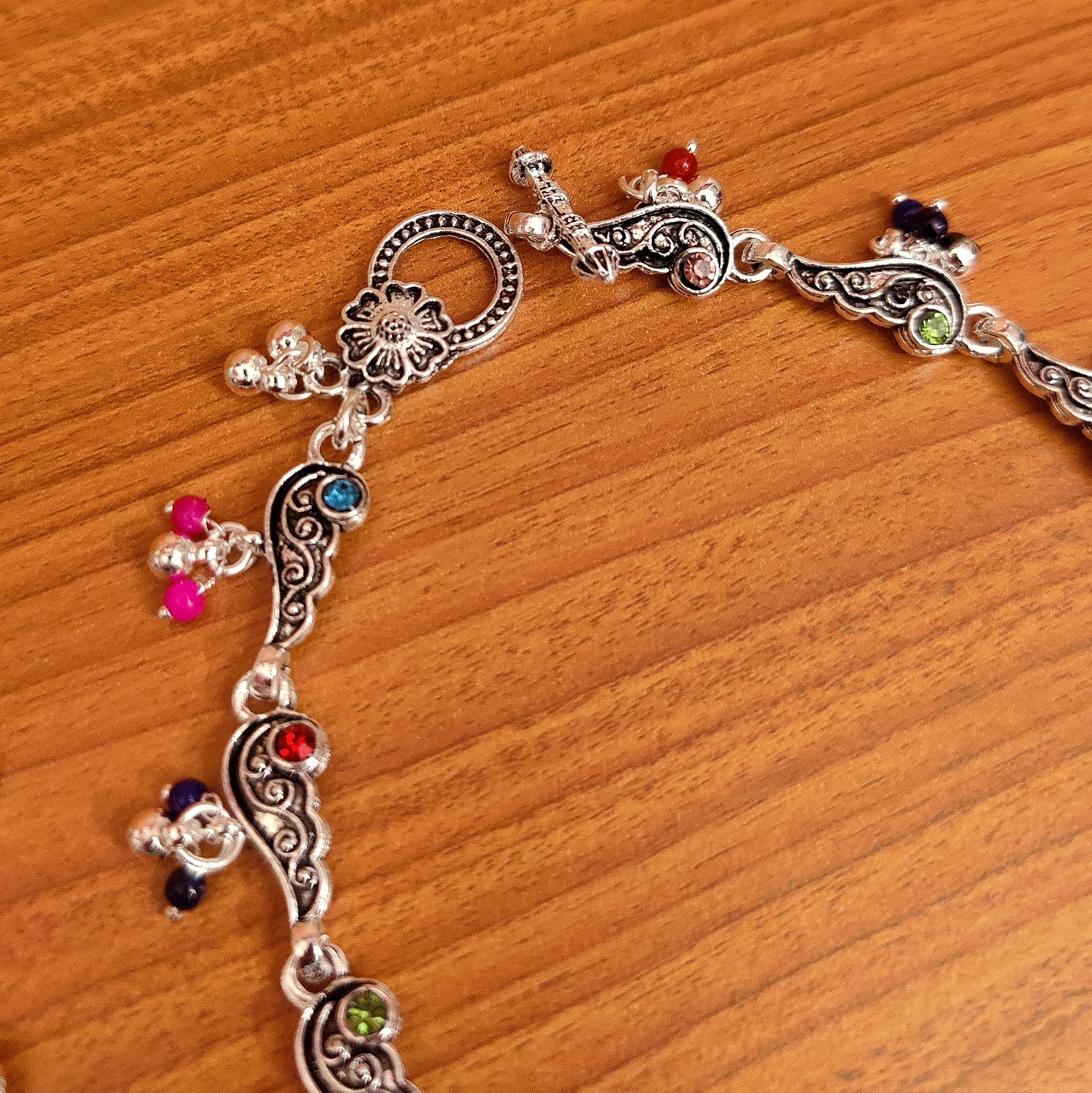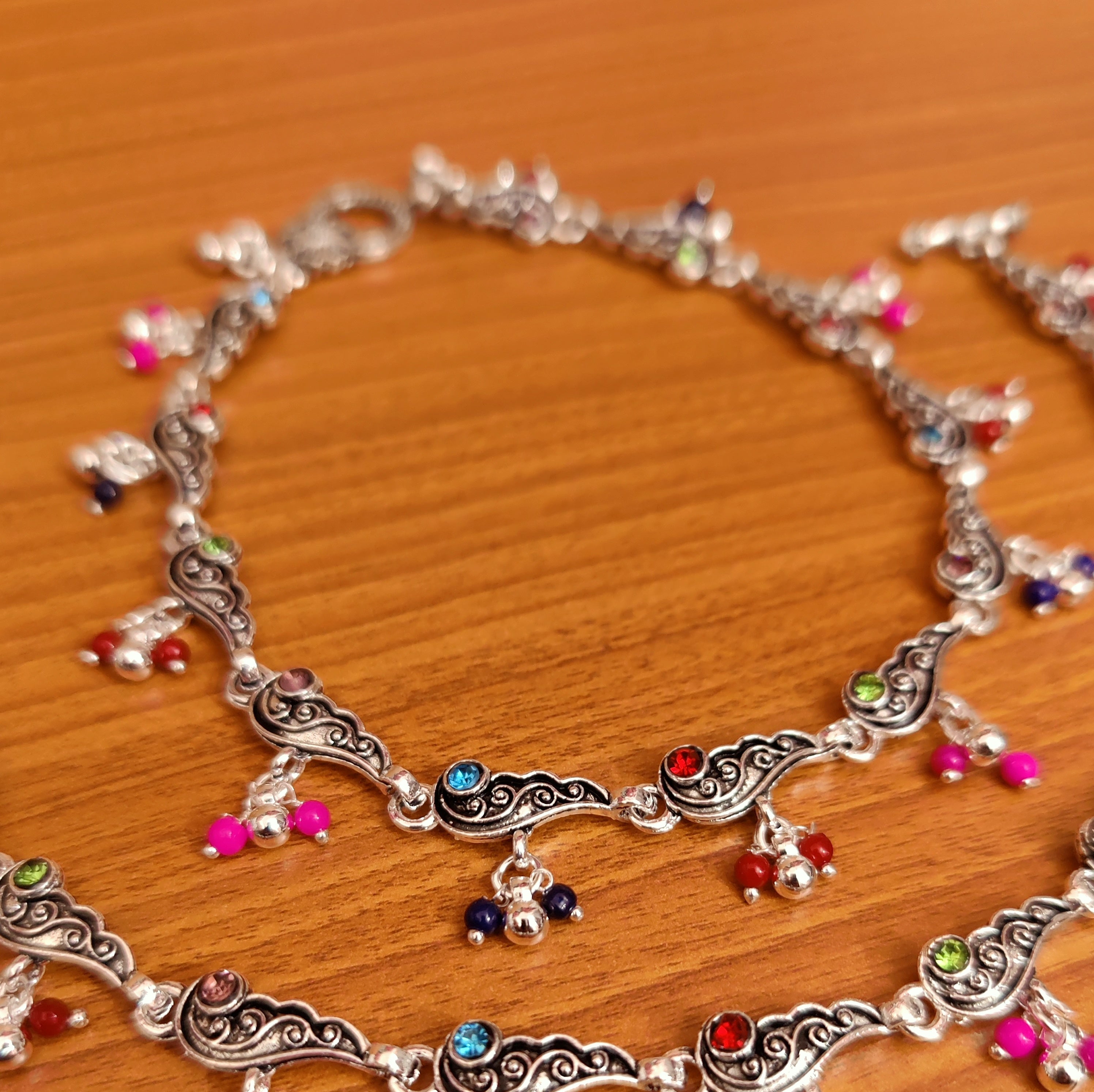 OXIDISED SILVER LOOK TRADITIONAL ANKLETS