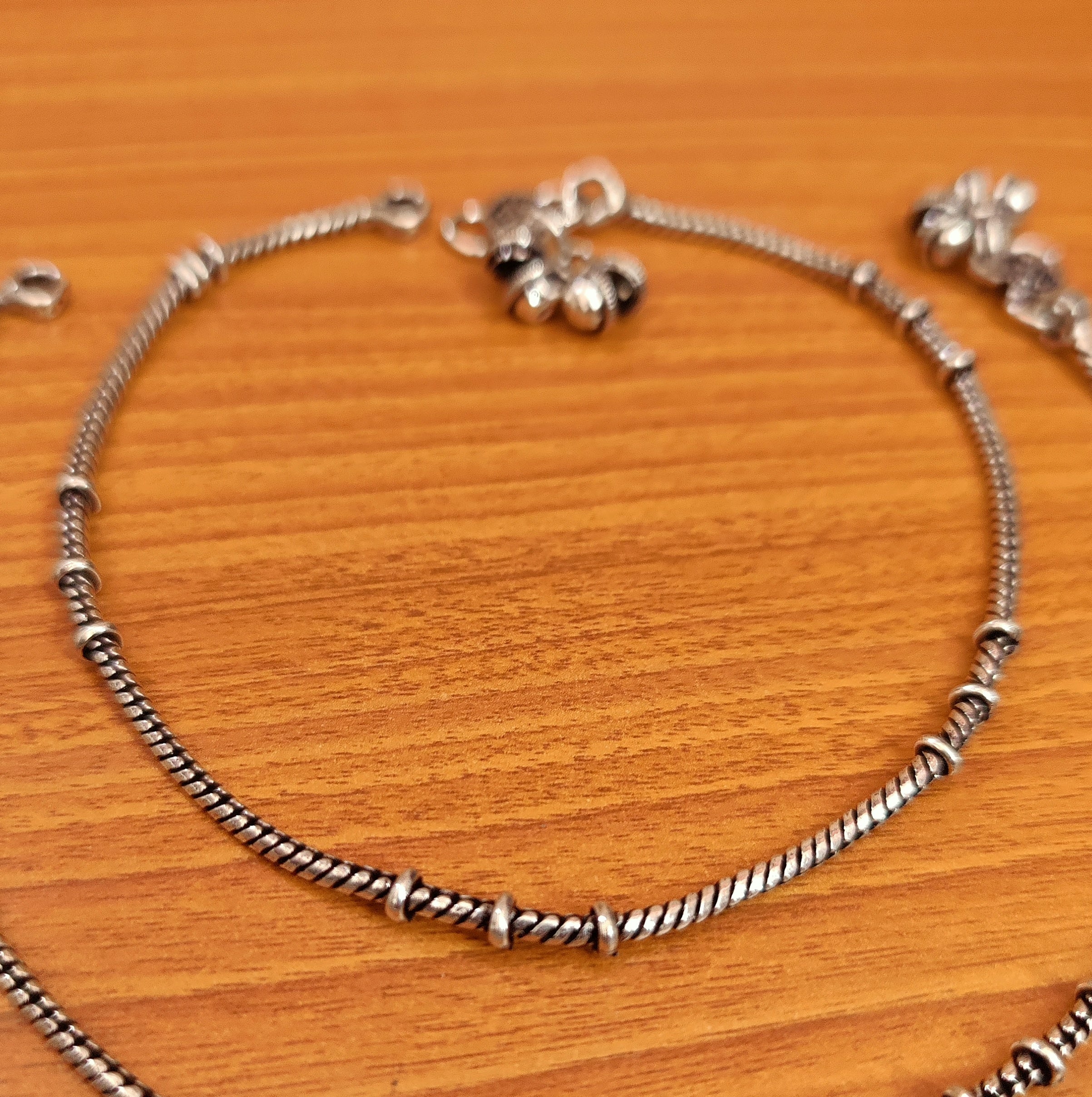 OXIDISED SILVER LIGHT WEIGHT ANKLETS