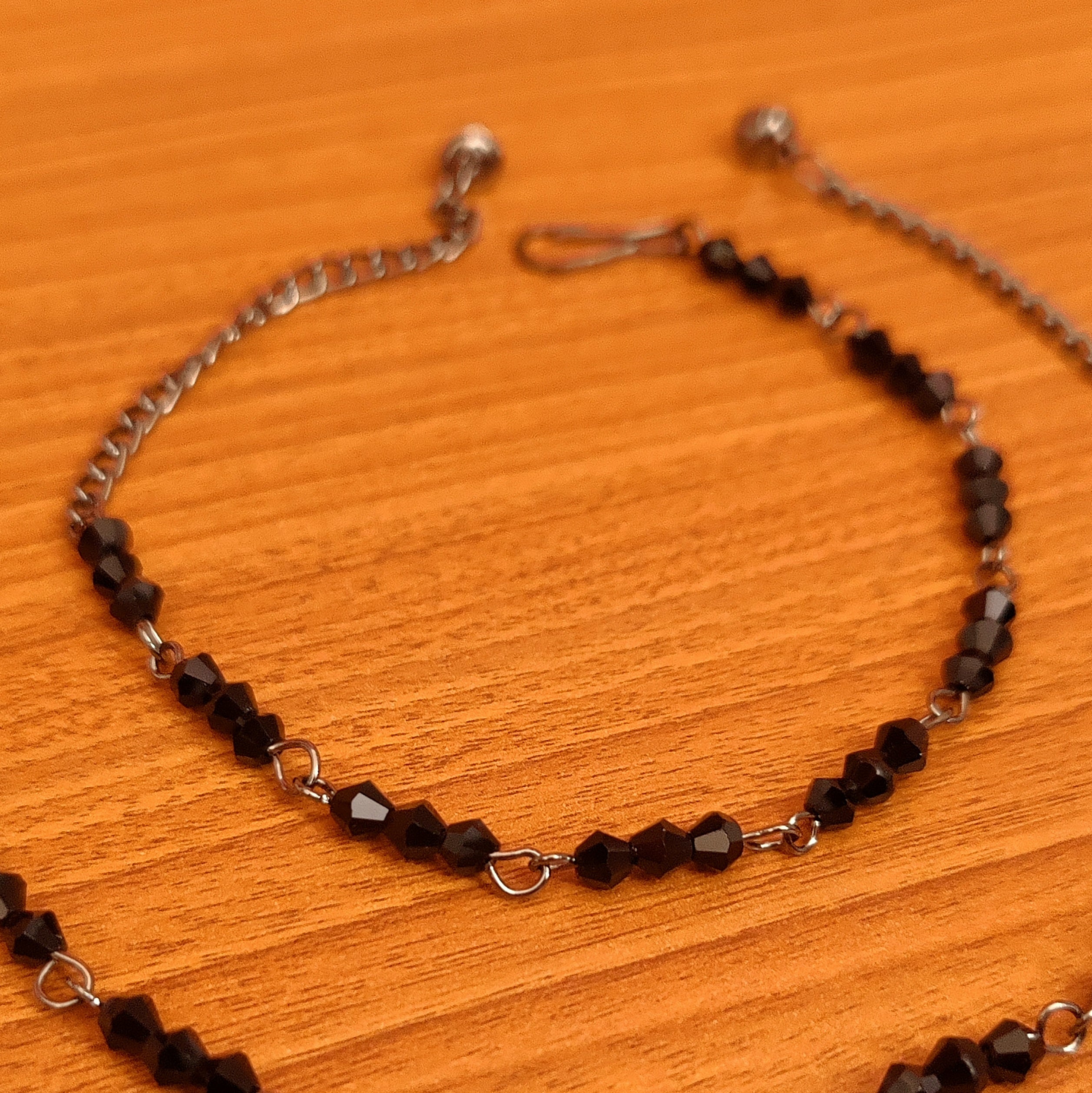 BLACK CRYSTAL SILVER PLATED ANKLETS