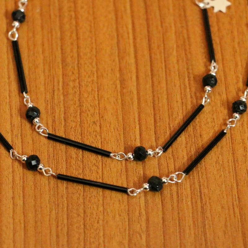 OXIDISED SILVER LOOK BLACK BEADS ANKLETS