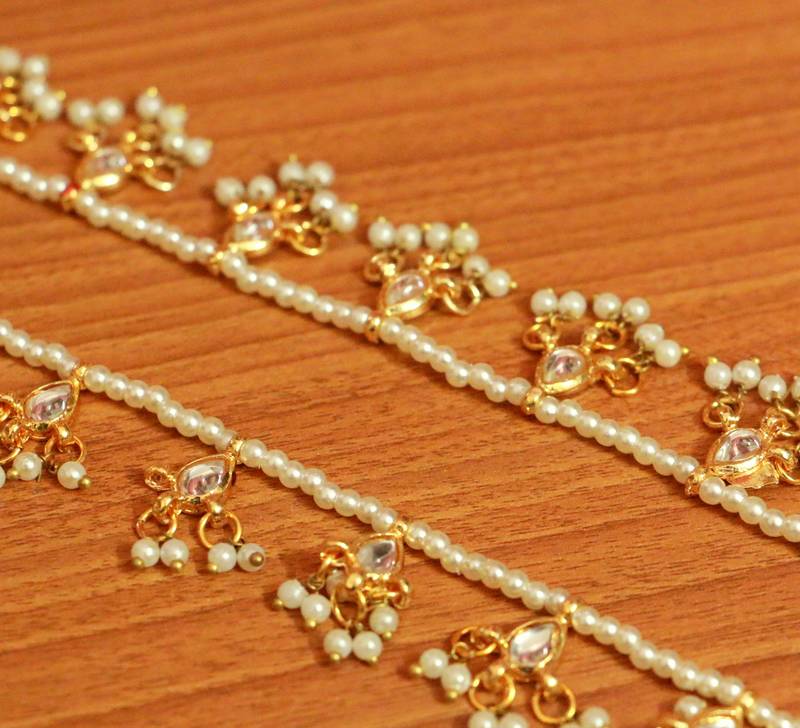 WHITE PEARL AND KUNDAN MEENAKARI ANKLETS