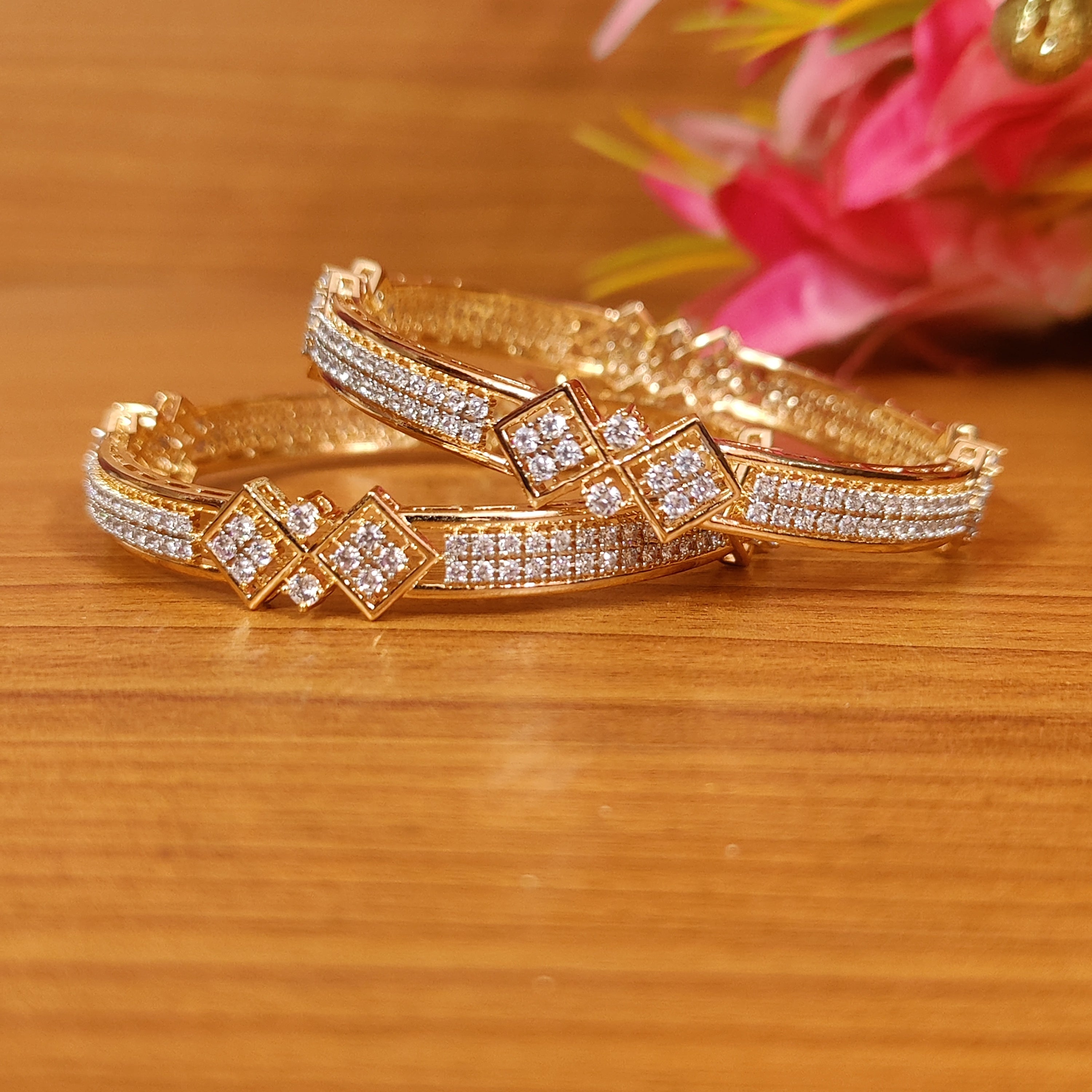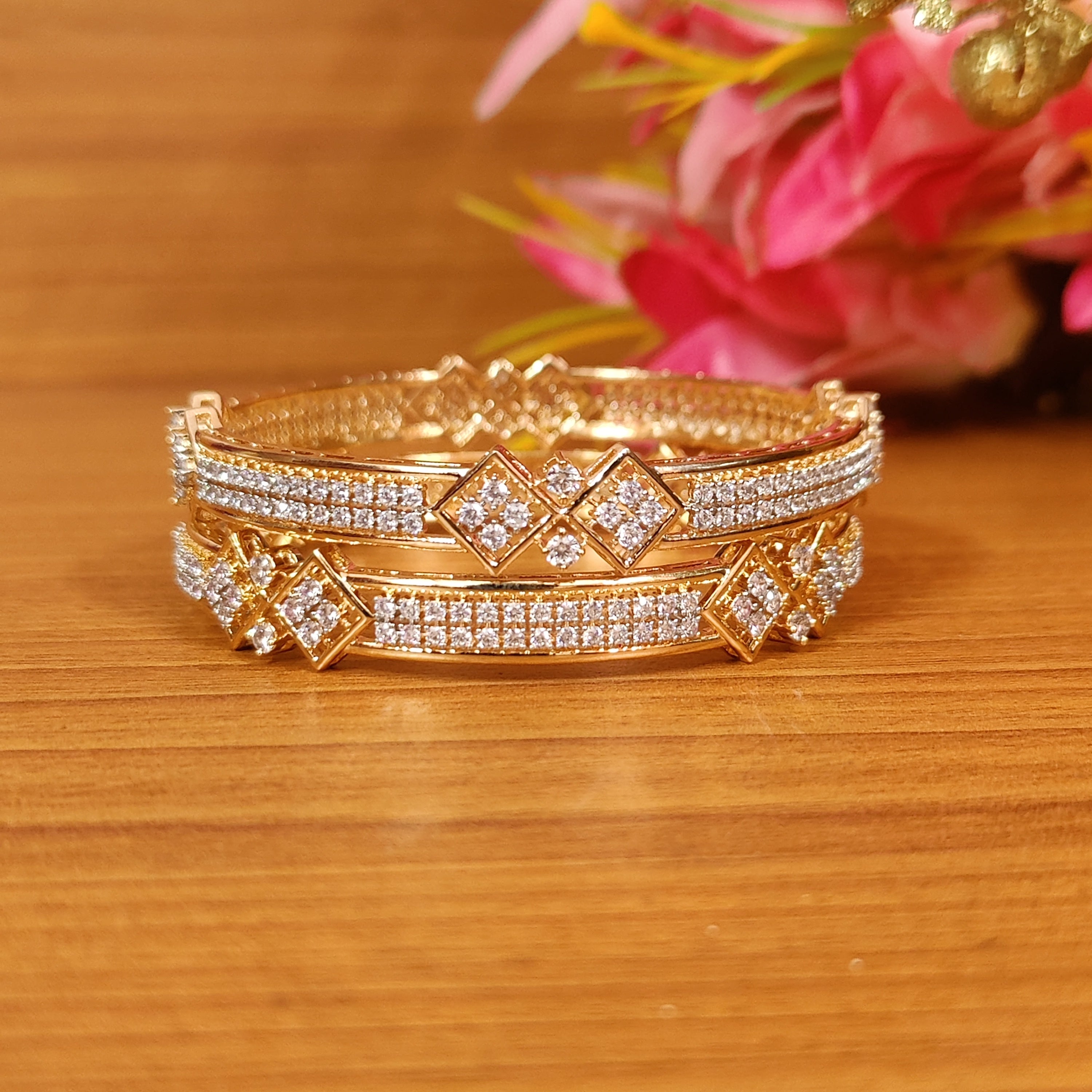Diamond & Gold Pattern Cz Gold plated Bangles