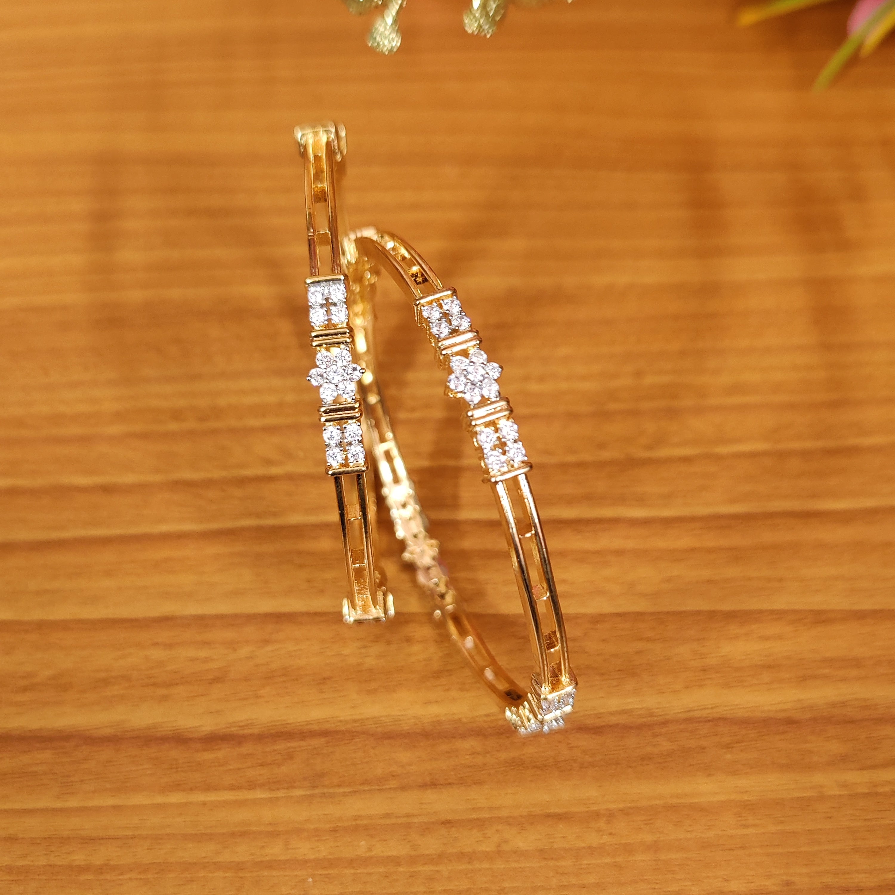 DIAMOND PATTERN CZ STUDDED GOLD PLATED BANGLES