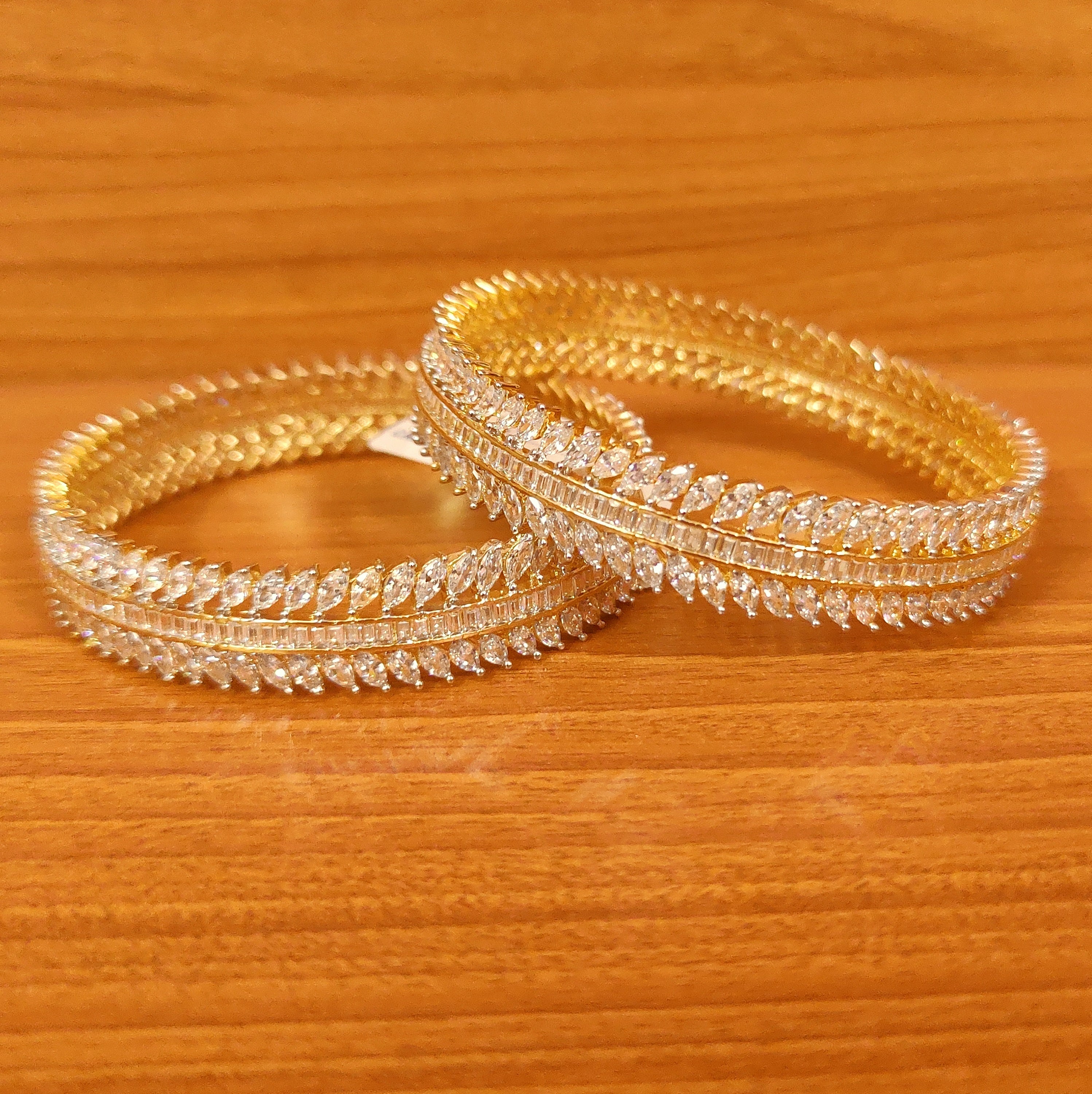 MARQUESE SHAPED DIAMOND LOOK GOLD PLATED BANGLES