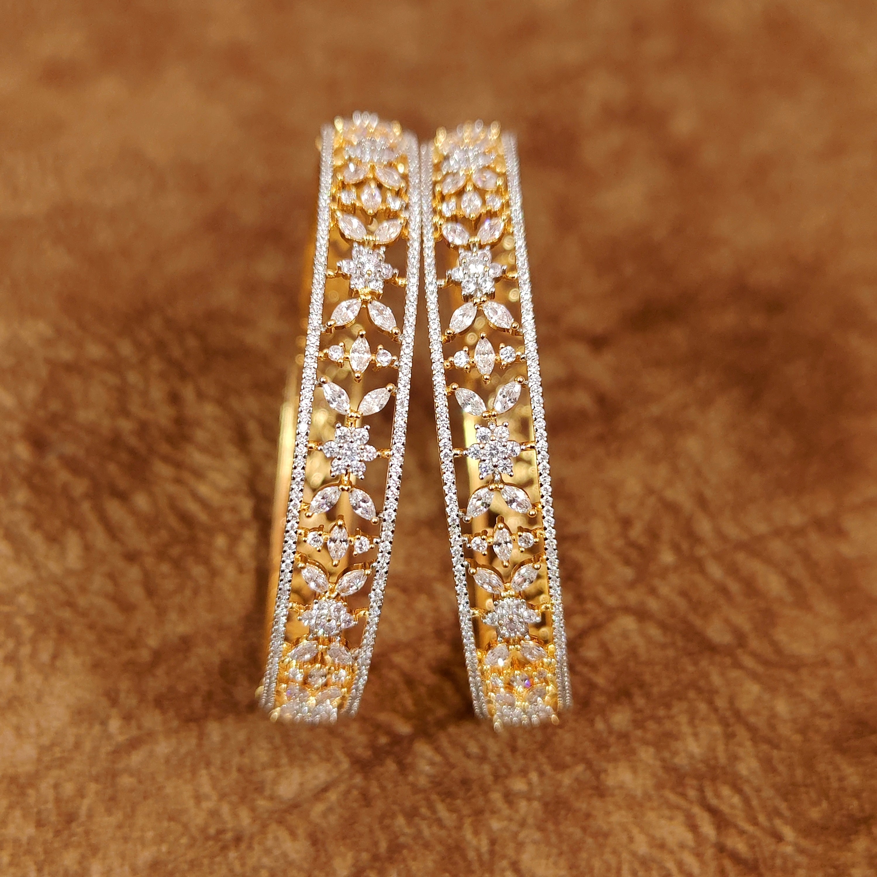 REAL DIAMOND PATTERN GOLD PLATED CZ BANGLES
