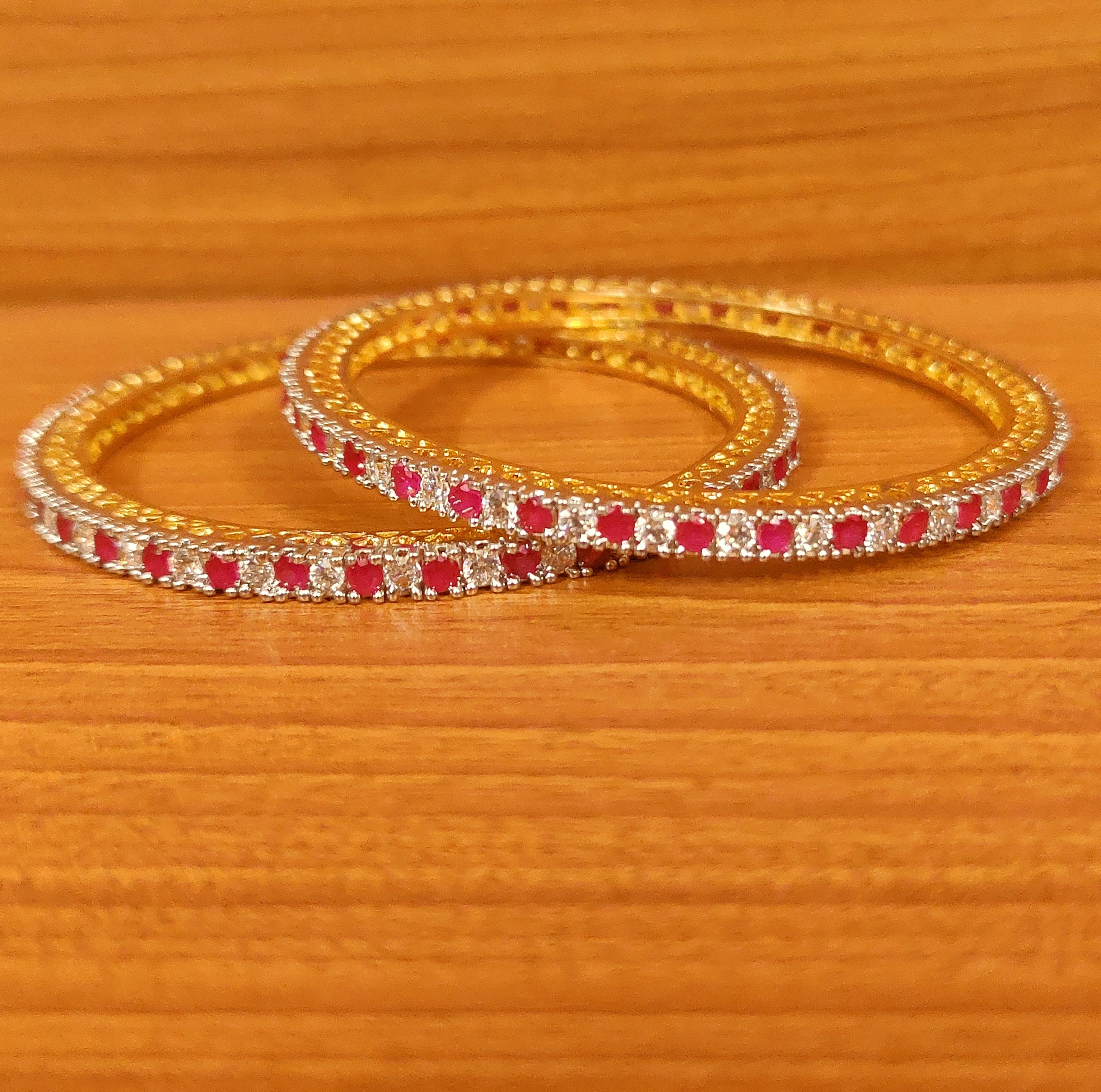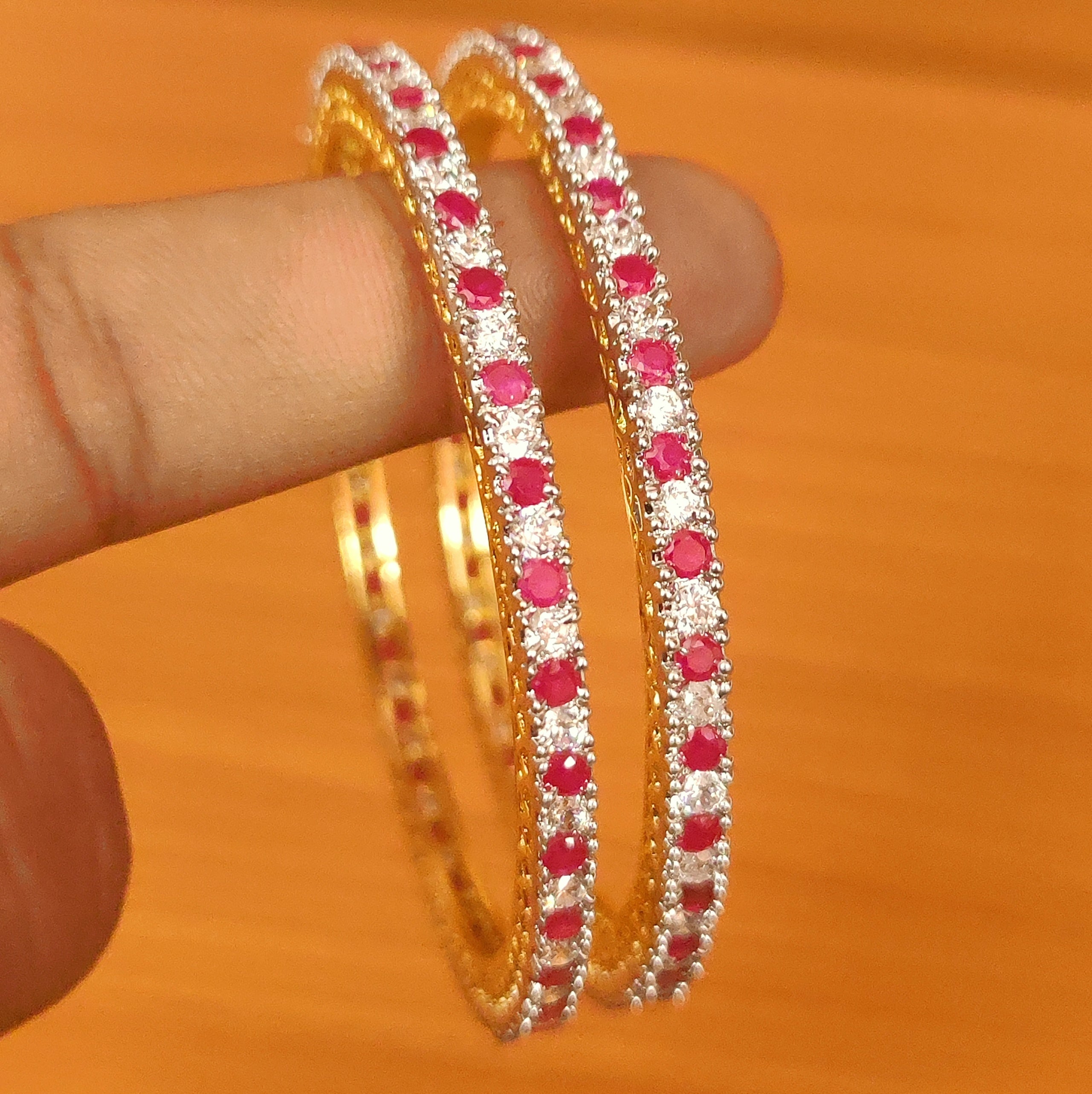 RUBY & CZ DIAMOND LOOK SINGLE LINE BANGLES