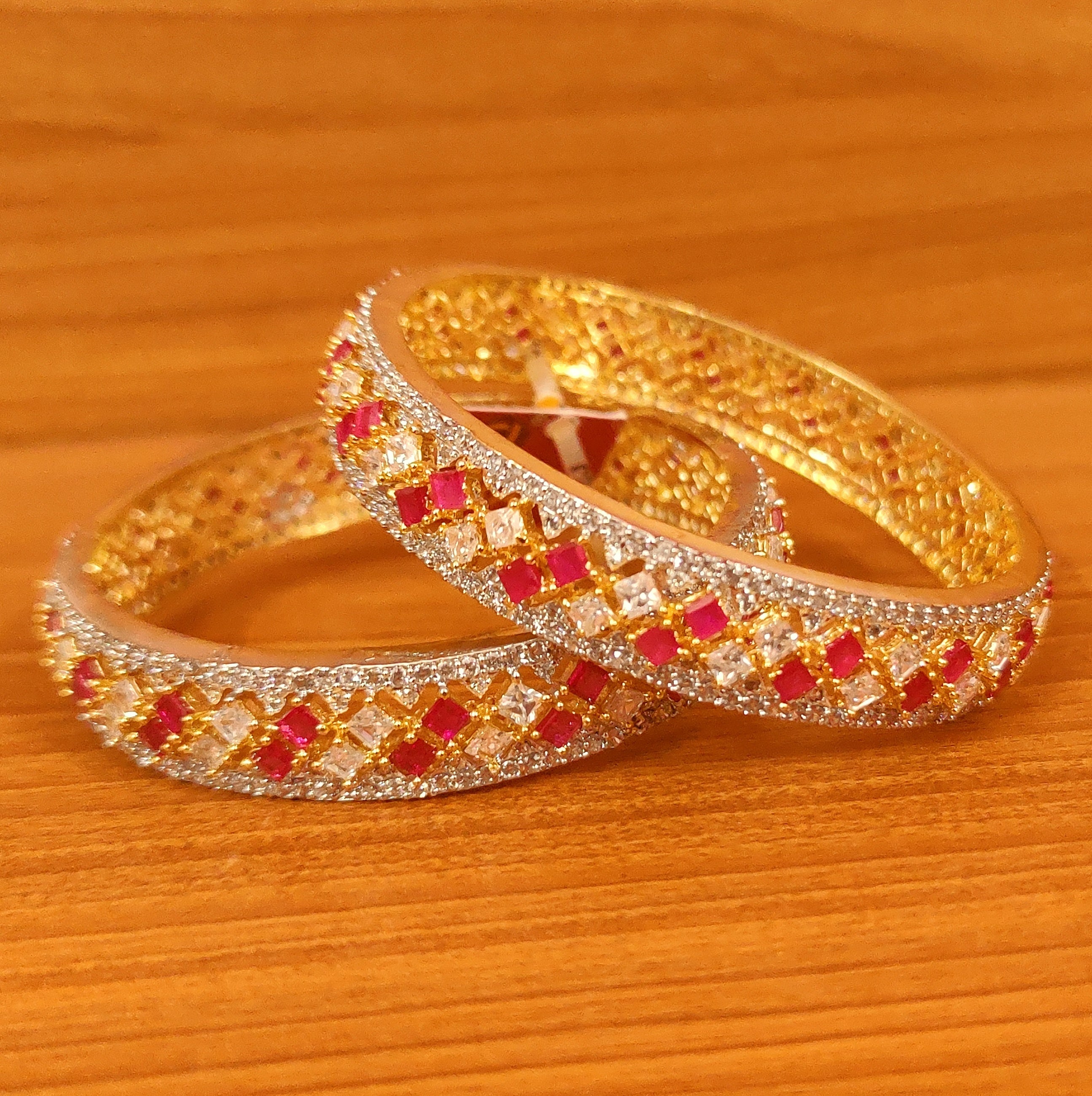 RUBY PRINCESS CUT CZ STUDDED DIAMOND LOOK BANGLES