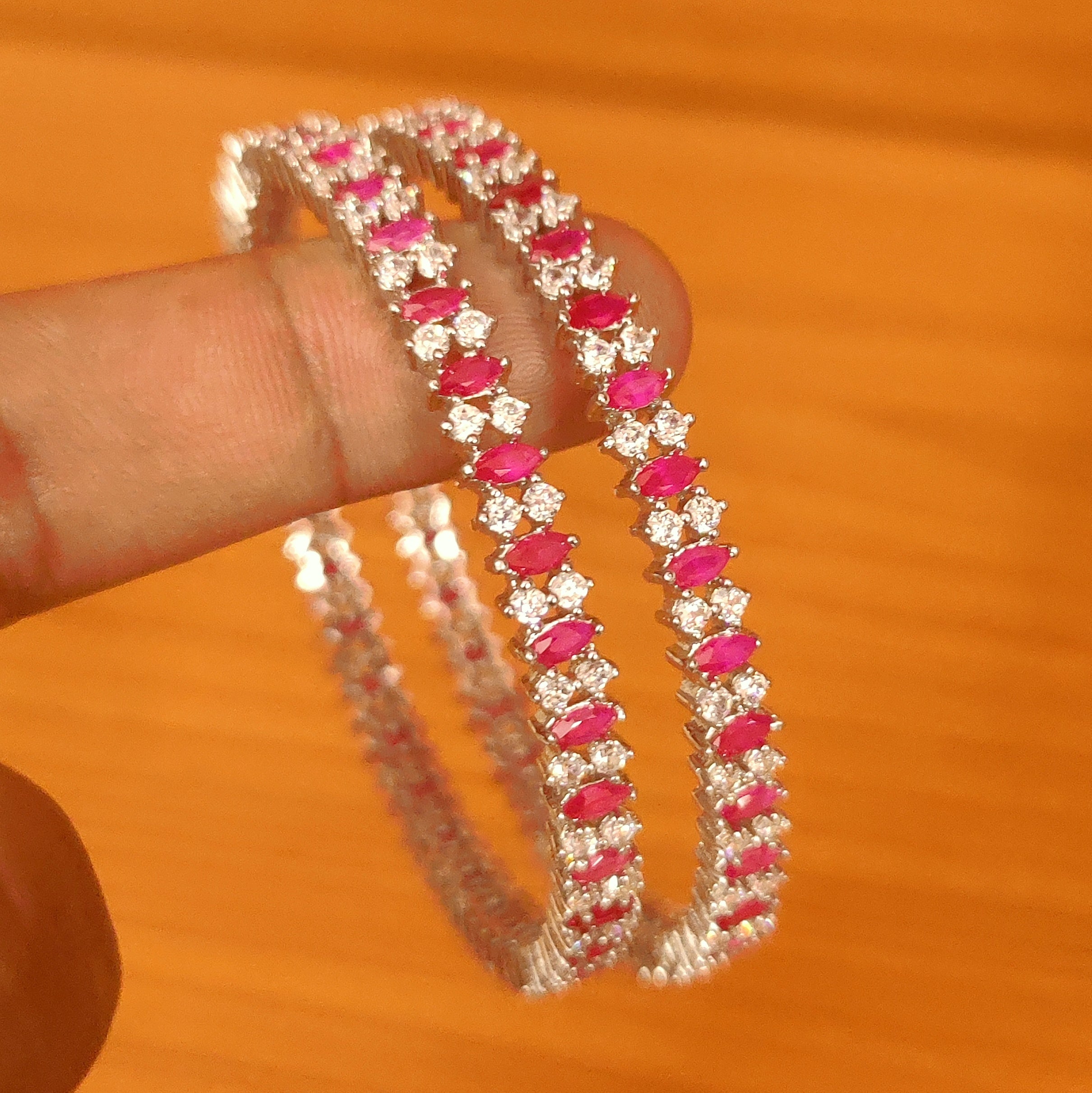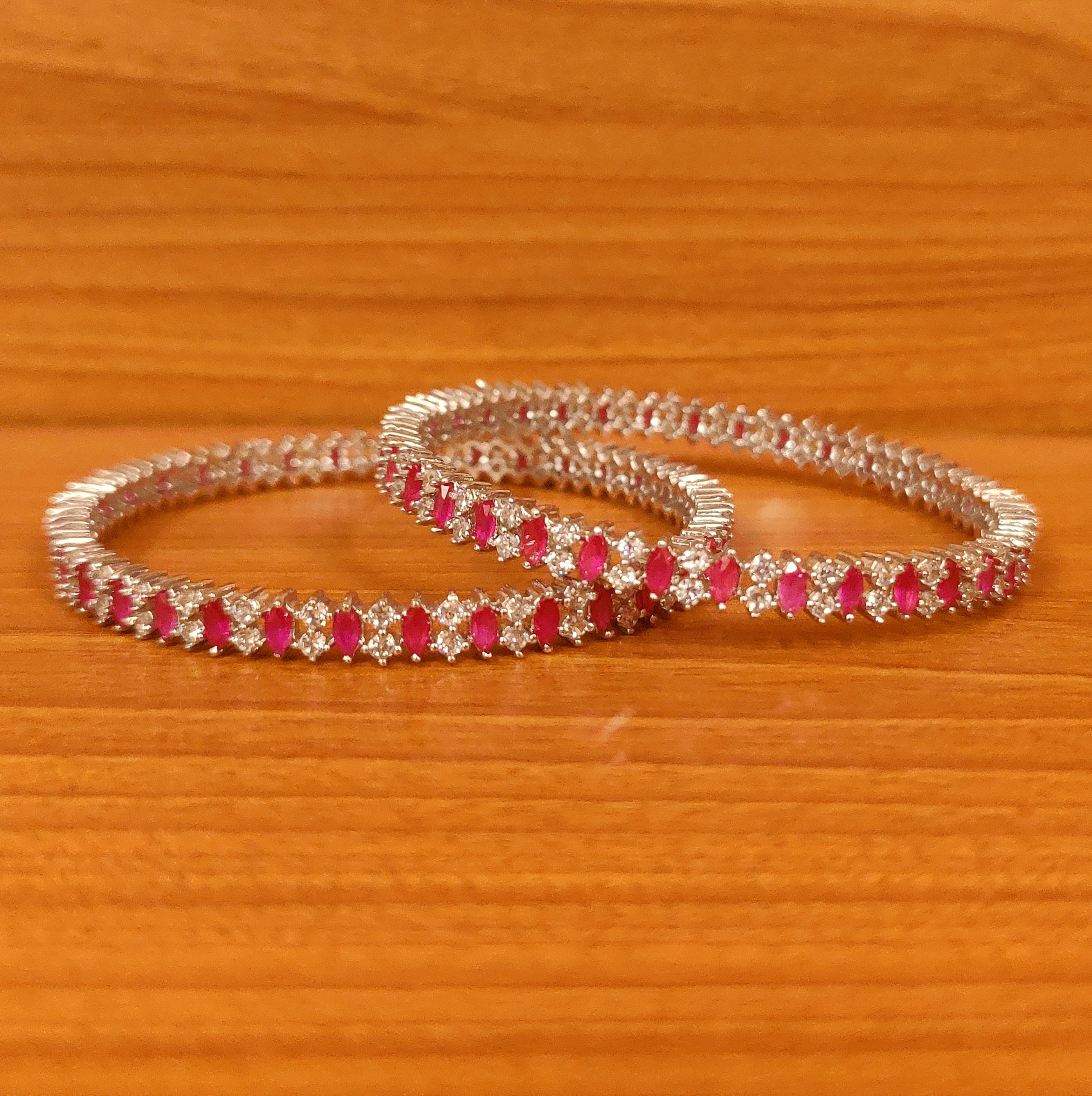 SILVER PLATED CZ STUDDED RUBY DIAMOND LOOK BANGLES