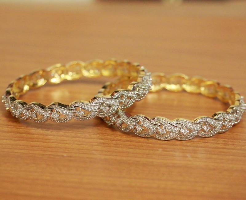 These bangles are handcrafted in silver & brass alloy with imitation cz stones of very fine quality. These artistic yet modern bangles are plated with fine nickle free gold rhodium to avoid any allergies to the skin.