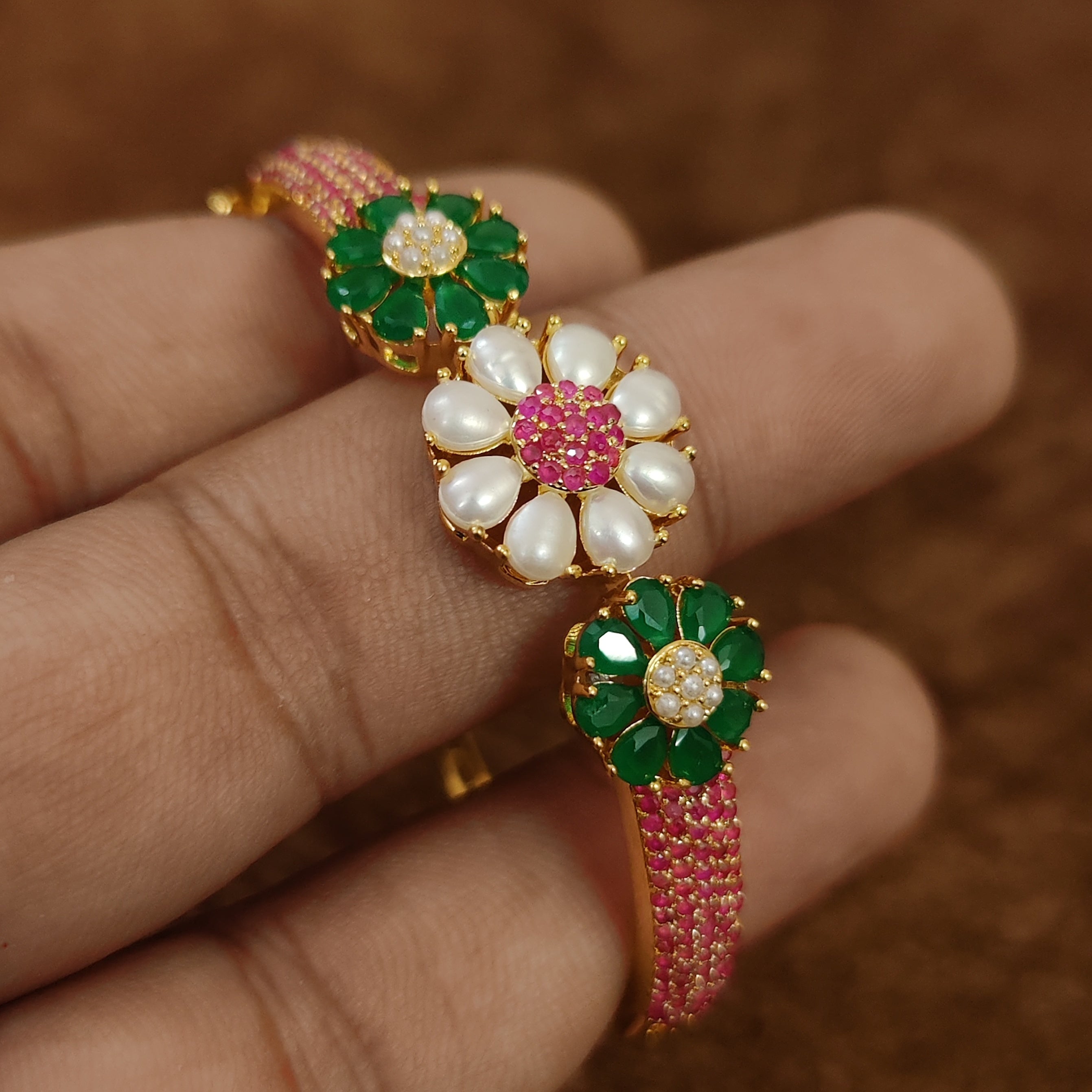 RUBY EMERALD & PEARL STUDDED GOLD PLATED BRACELET