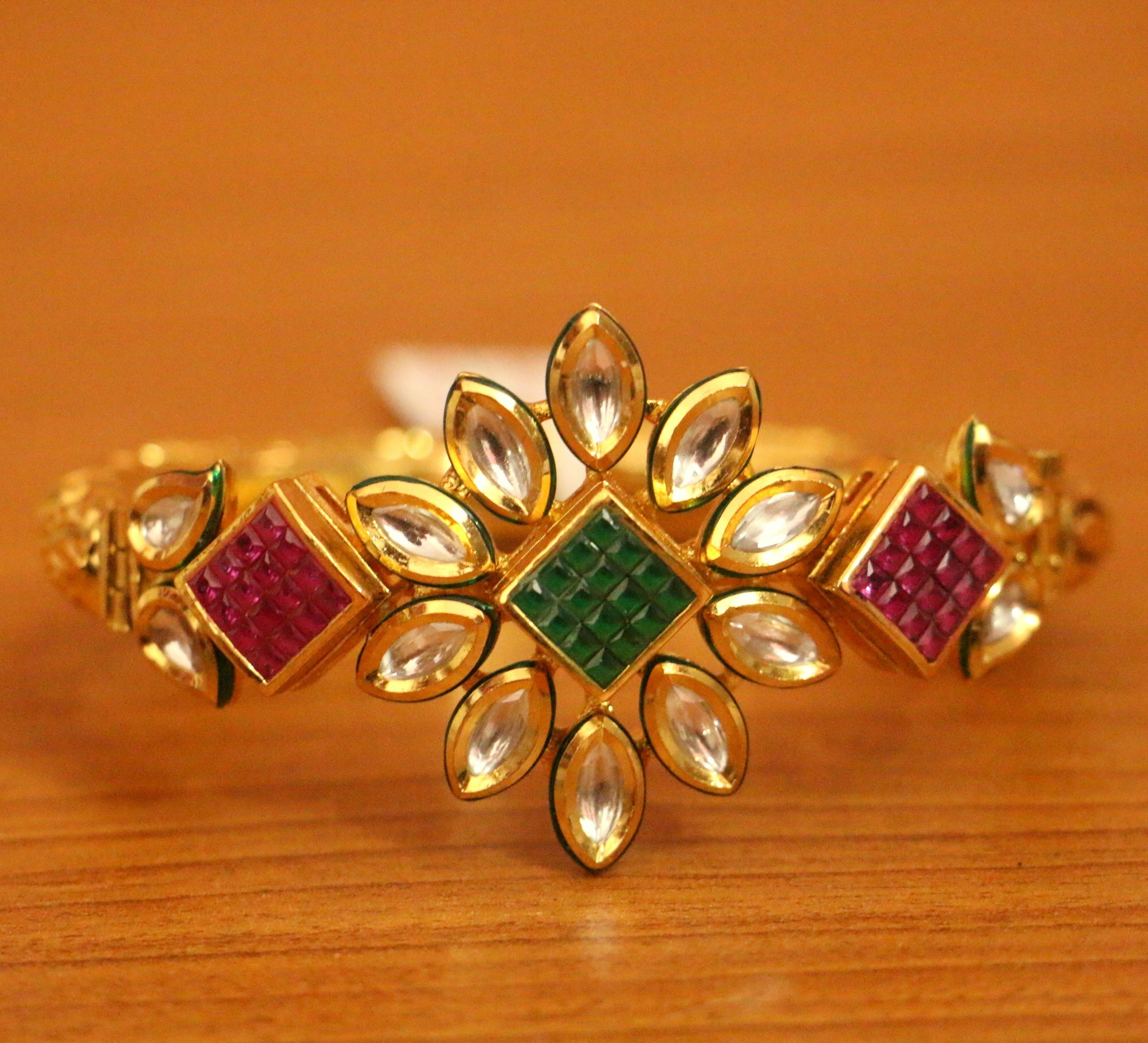 MULTICOLOUR KUNDAN POLKI ANTIQUE LOOK OPENABLE BANGLE