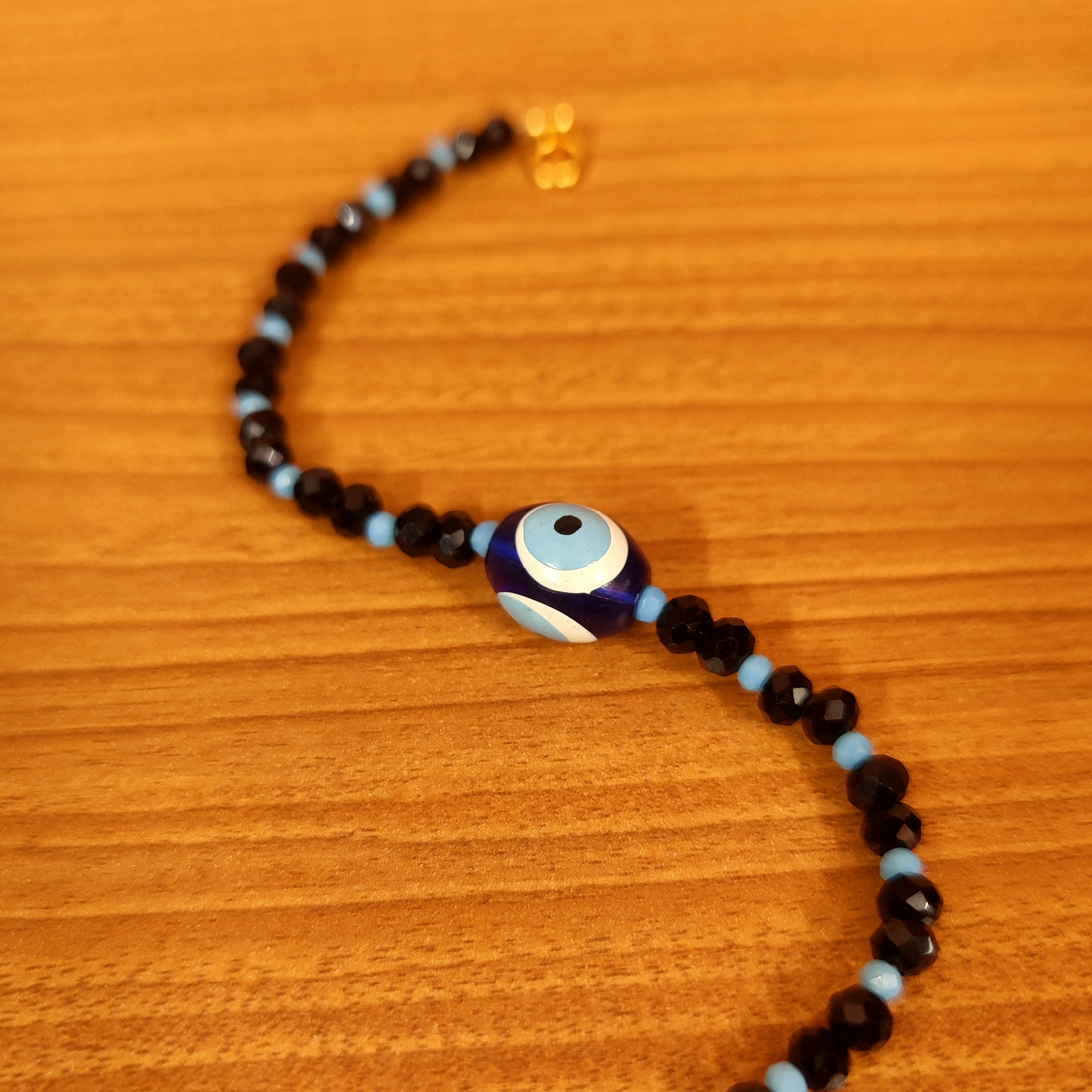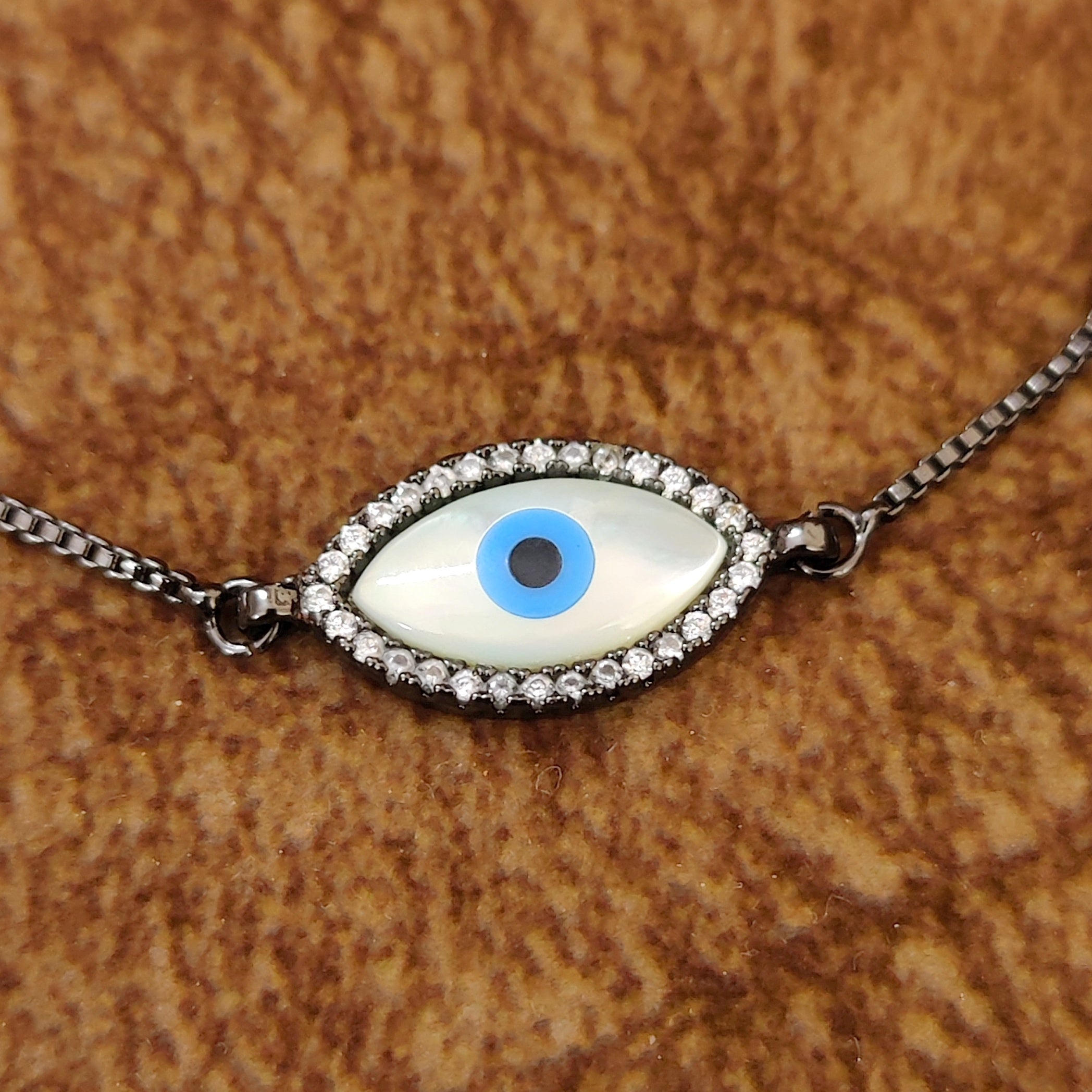 EVILE EYE BLACK RHODIUM PLATED CHAIN BRACELET