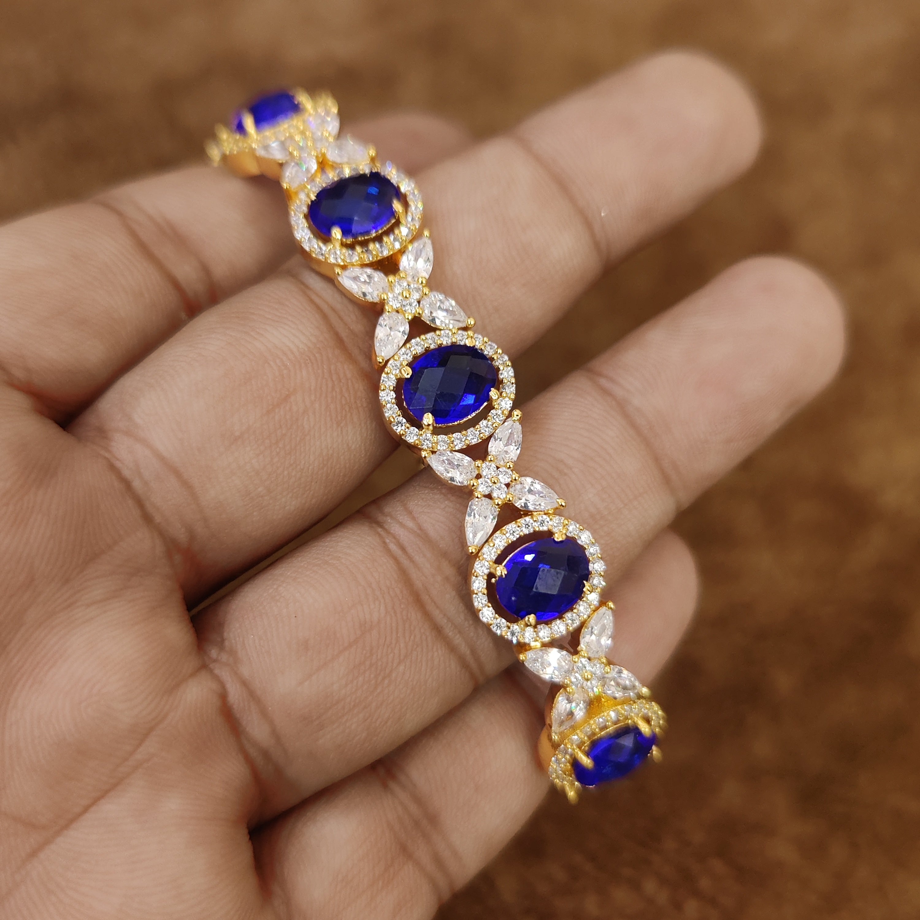 BLUE SAPPHIRE DIAMOND LOOK GOLD PLATED BRACELET