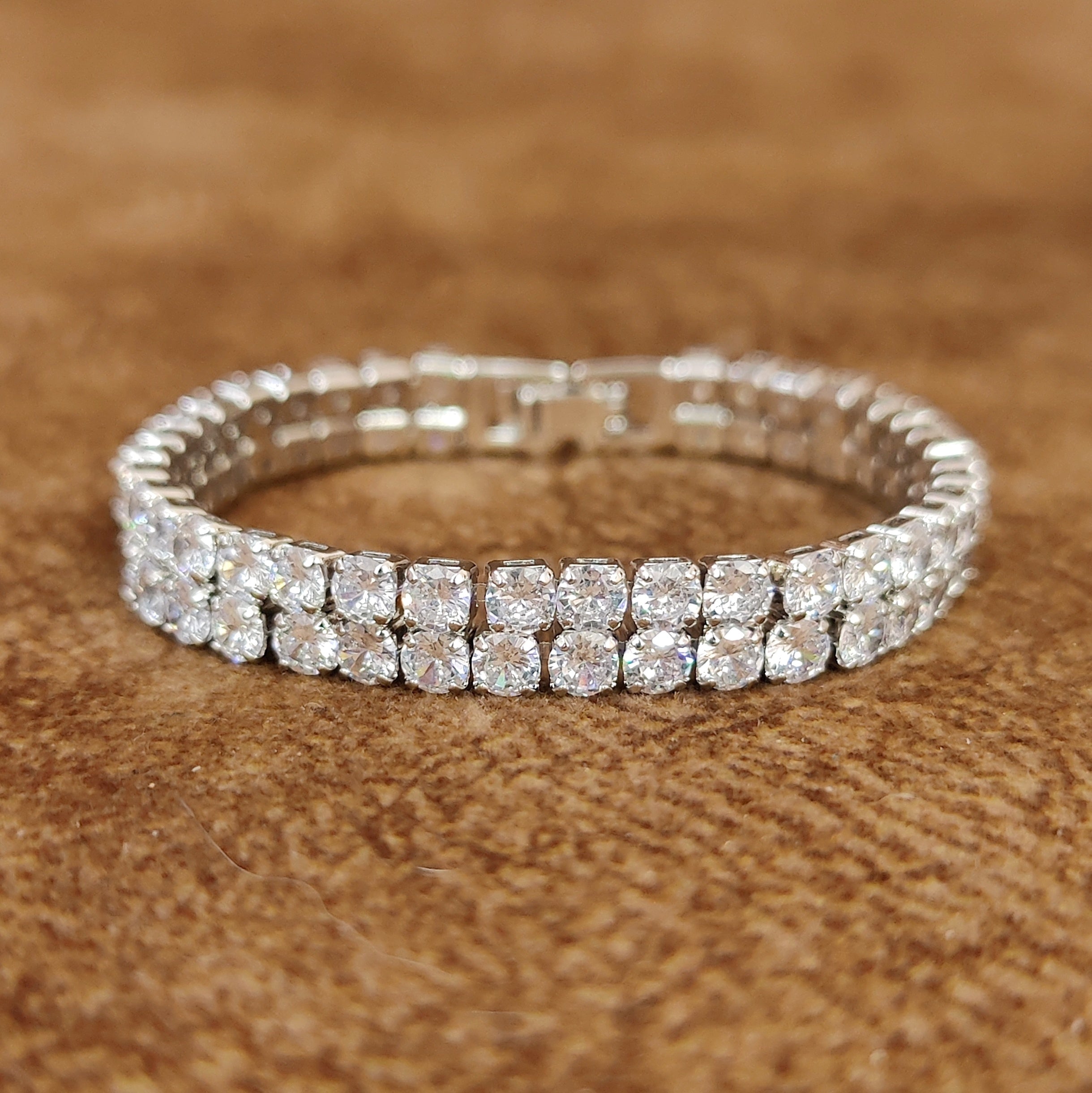 SILVER PLATED DIAMOND LOOK 2 LAYER TENNIS BRACELET