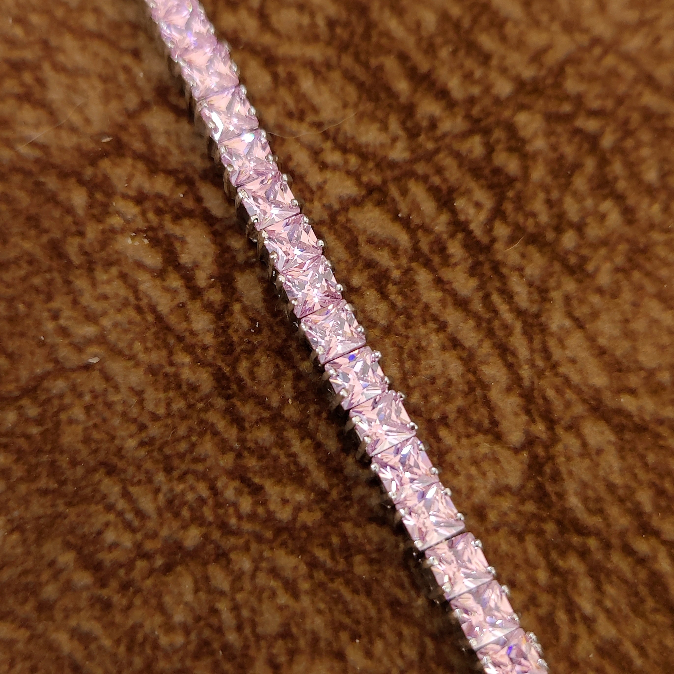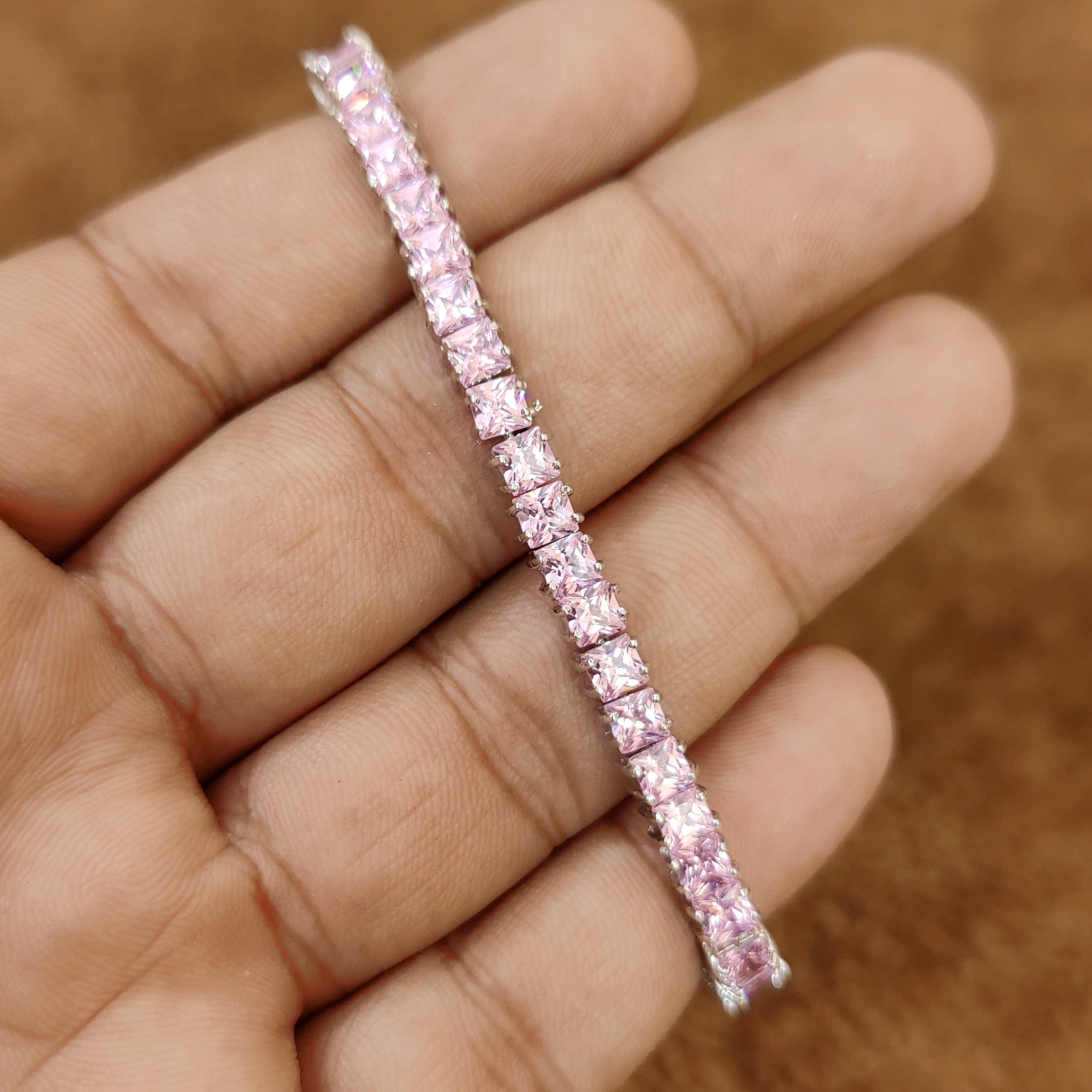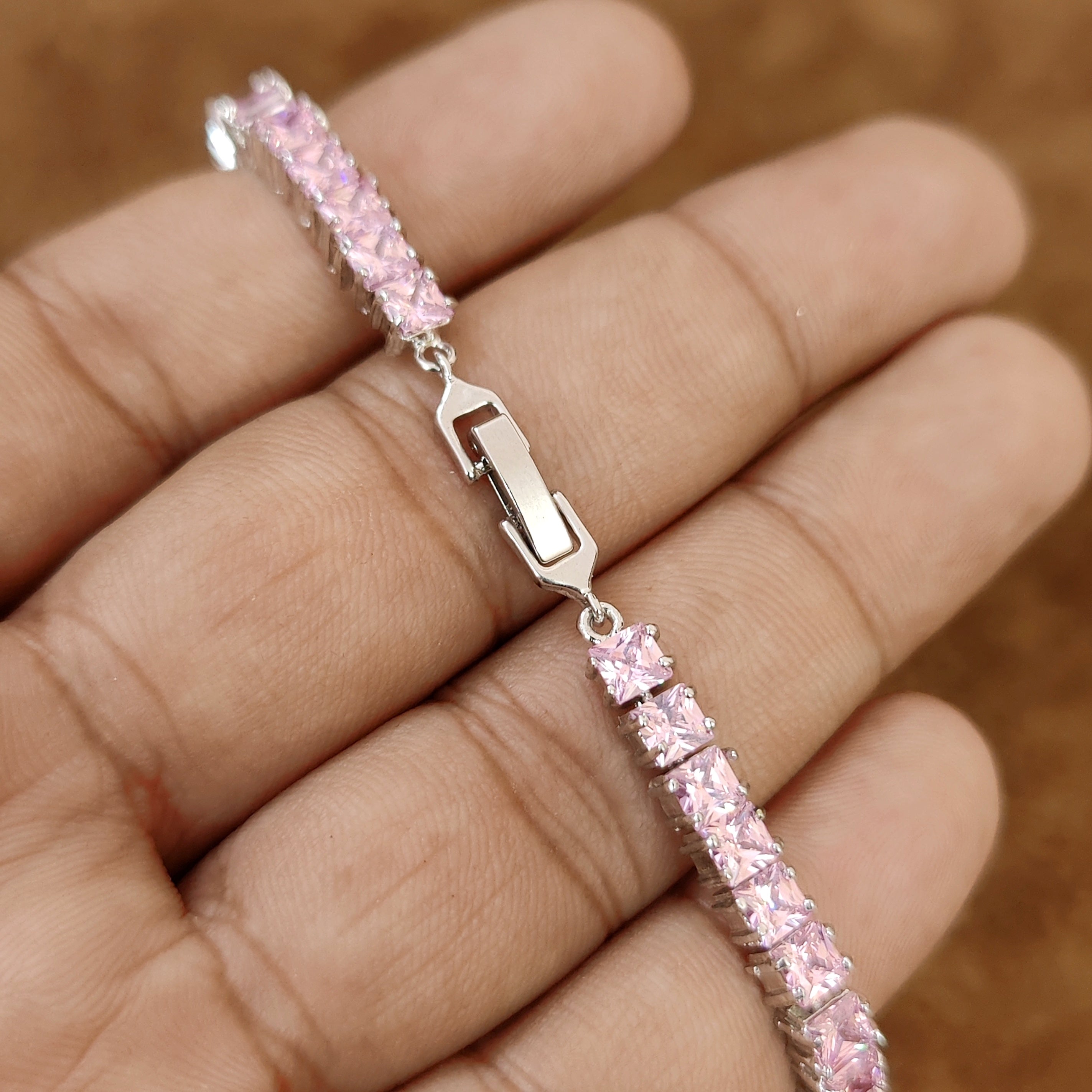 LIGHT PINK ZIRCON PRINCESS CUT SILVER BRACELET