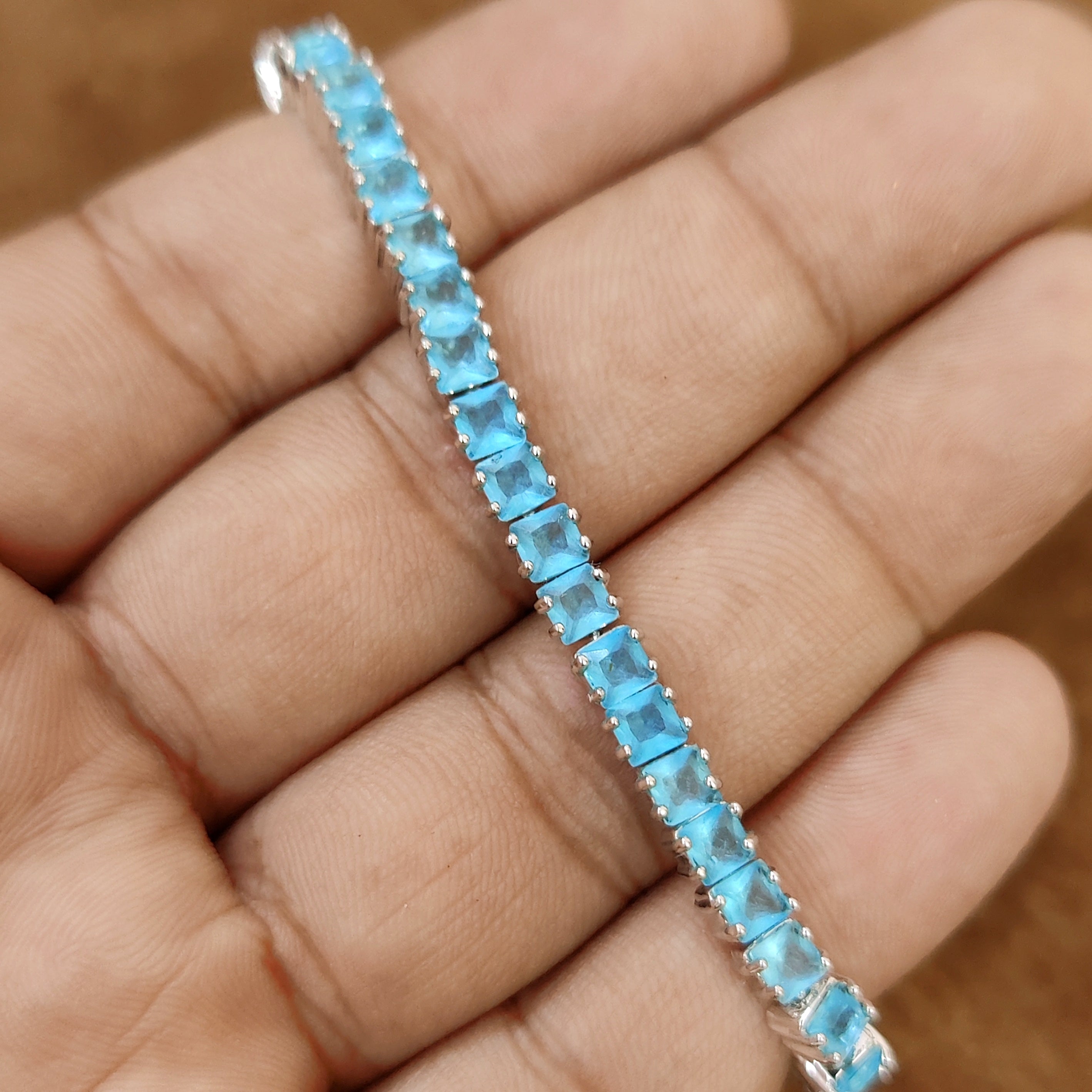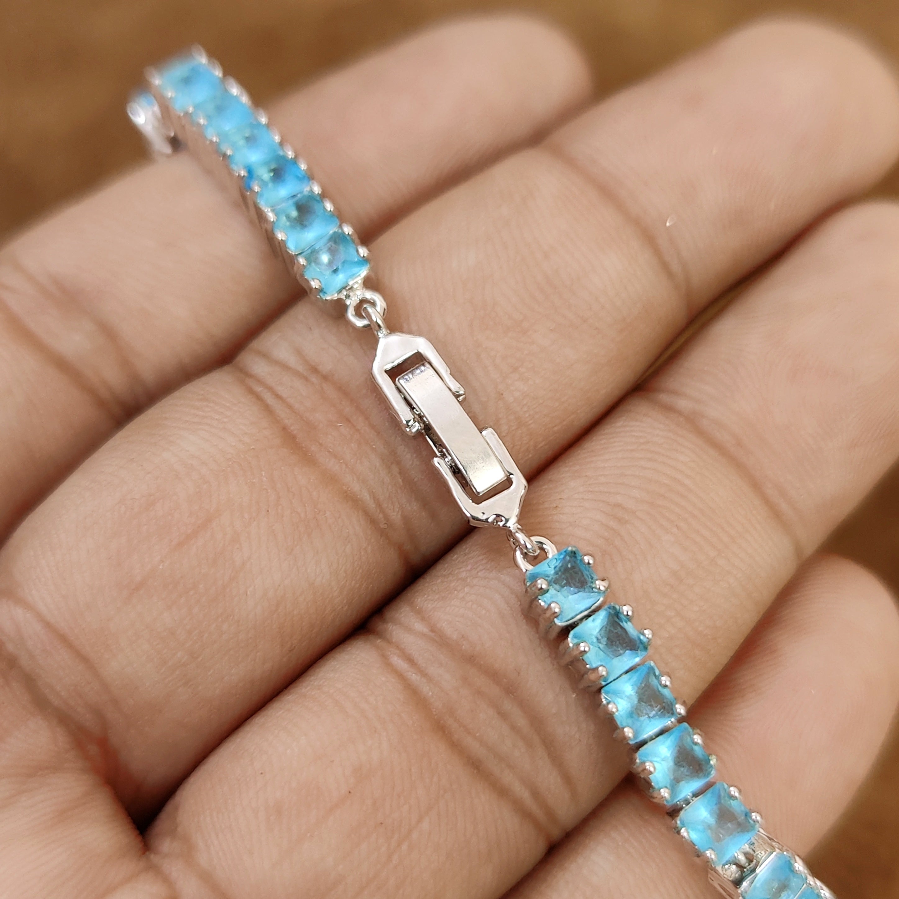 AQUA BLUE ZIRCON SILVER PLATED TENNIS BRACELET