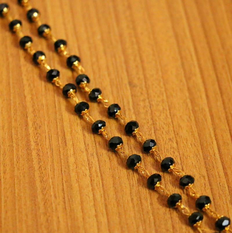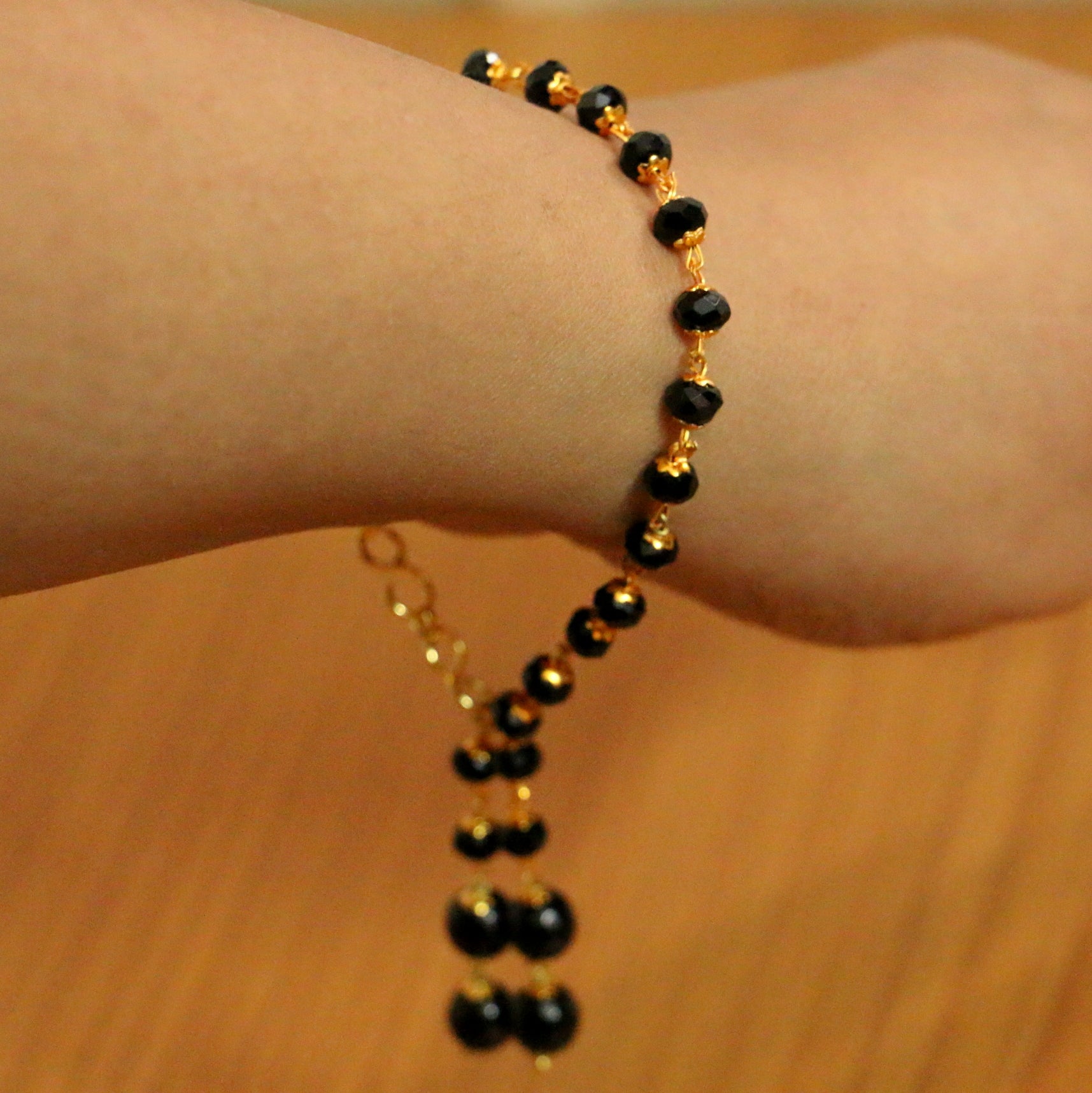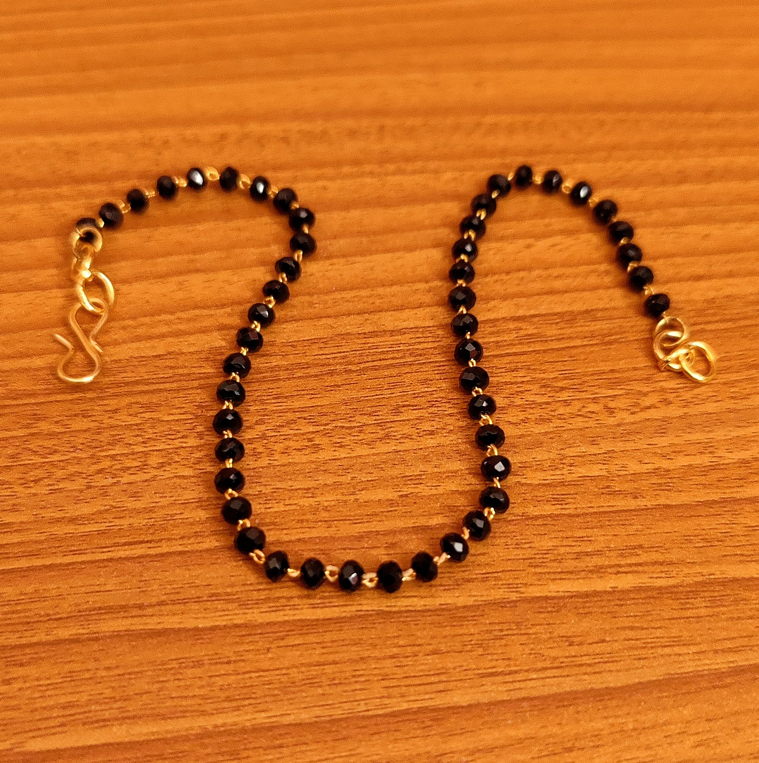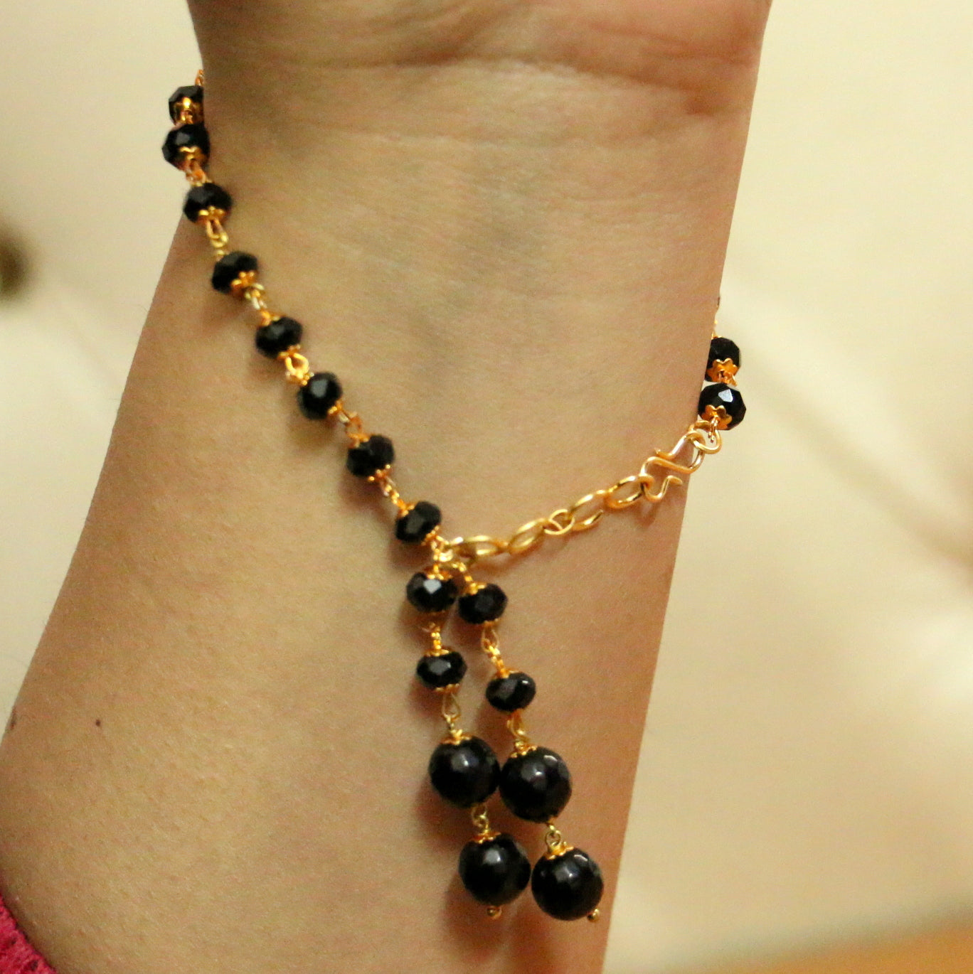 BLACK CRYSTAL BEADED GOLD PLATED BRACELET