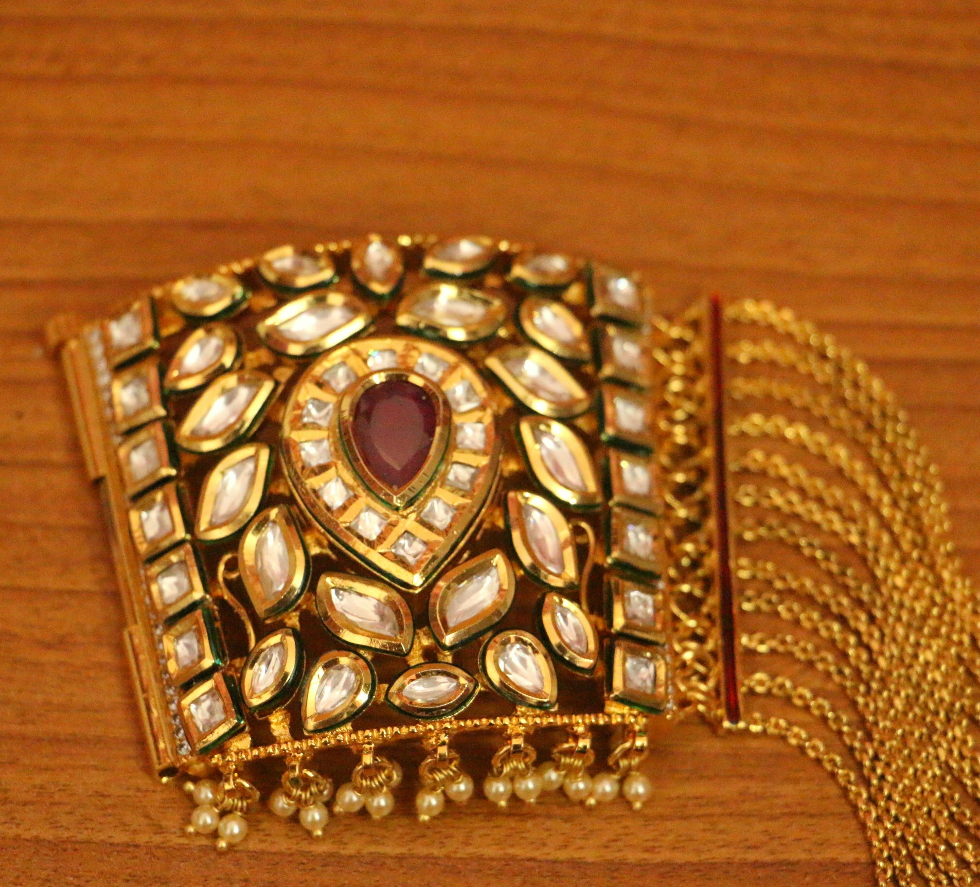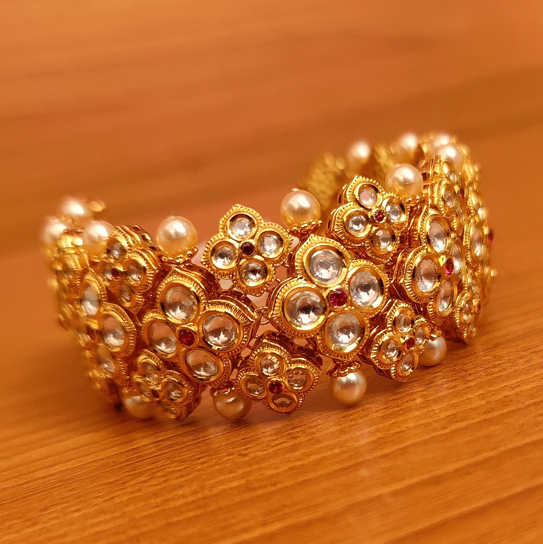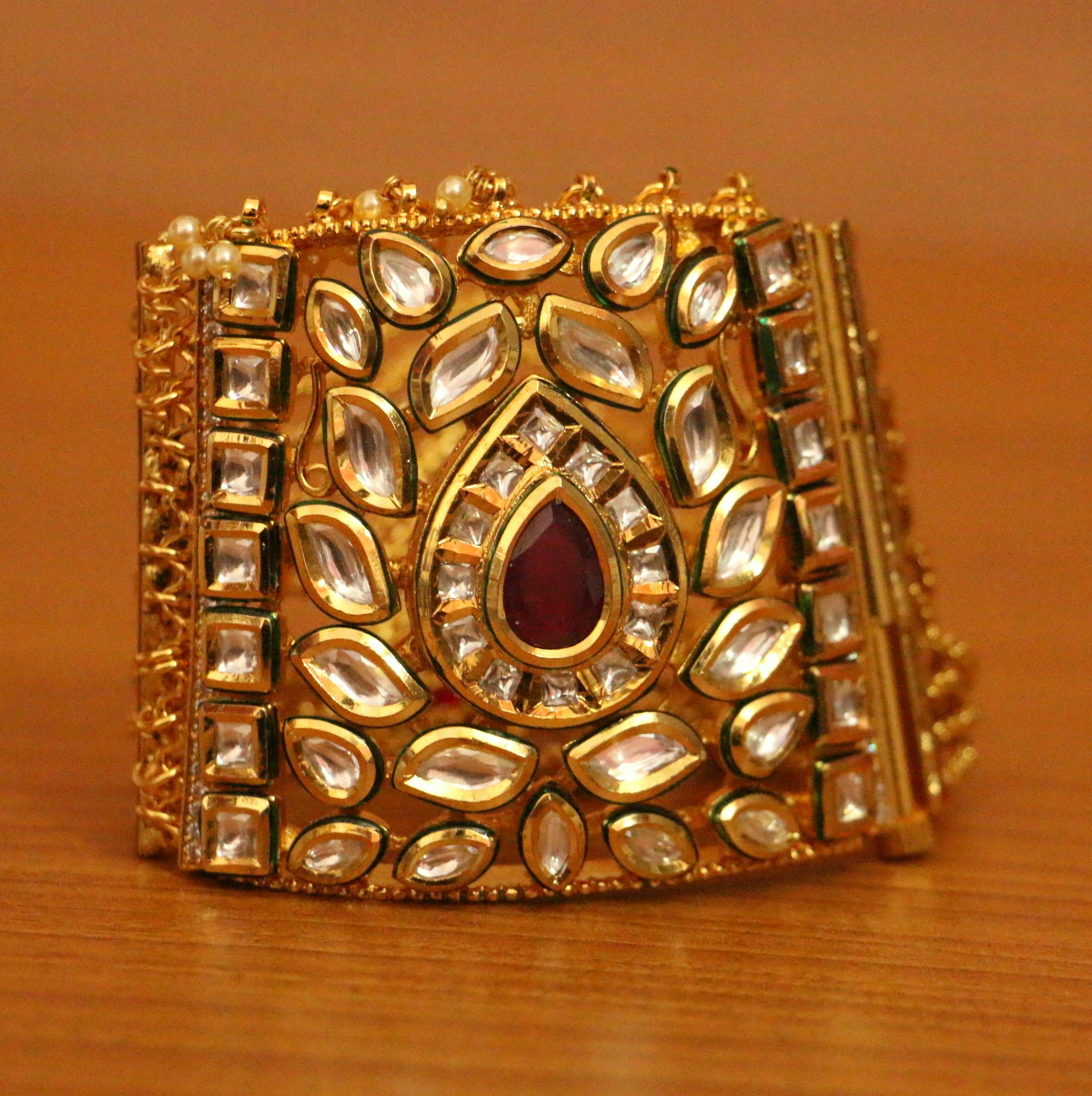 RUBY REAL KUNDAN POLKI LOOK GOLD PLATED OPENABLE BRACELET