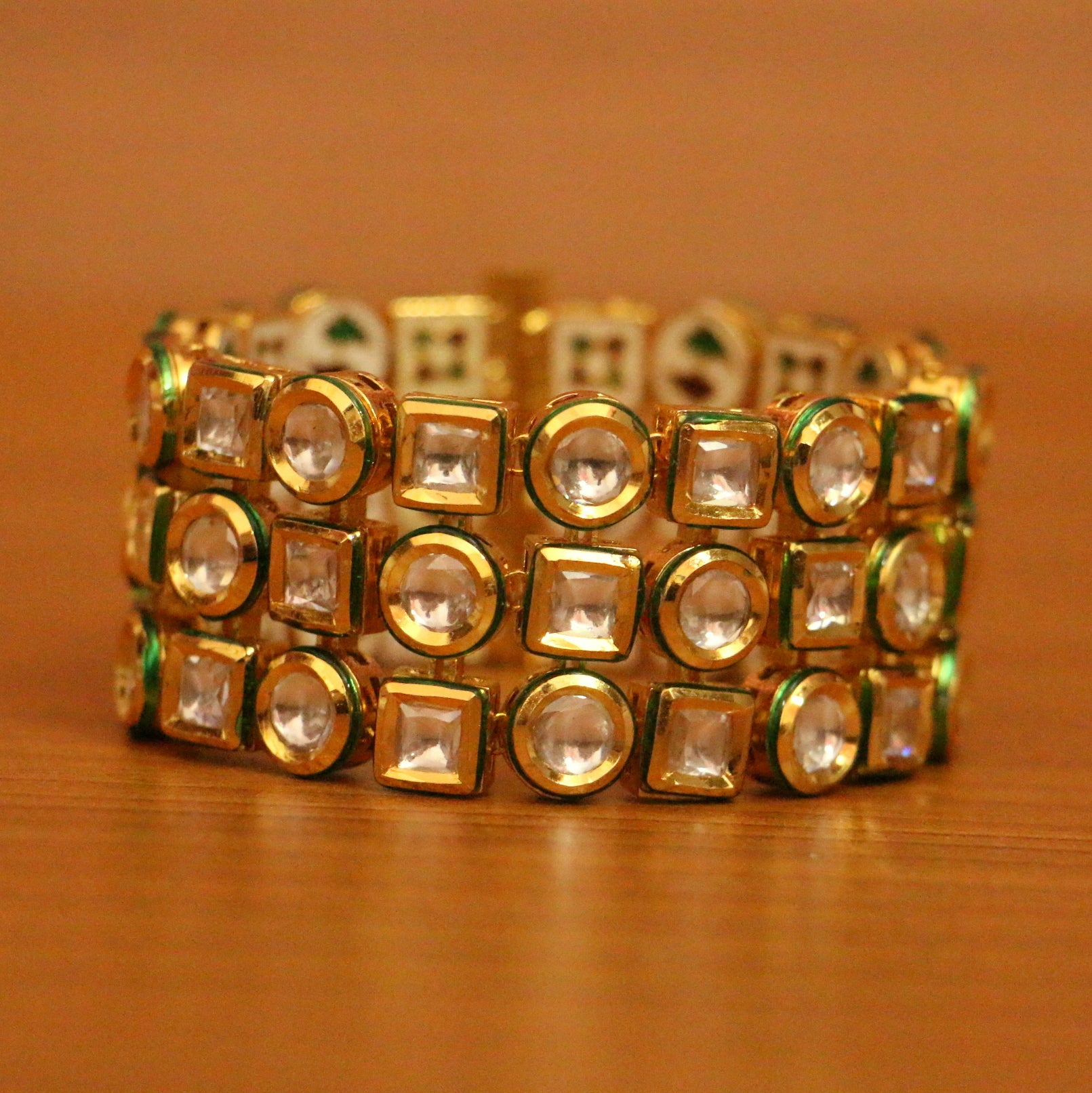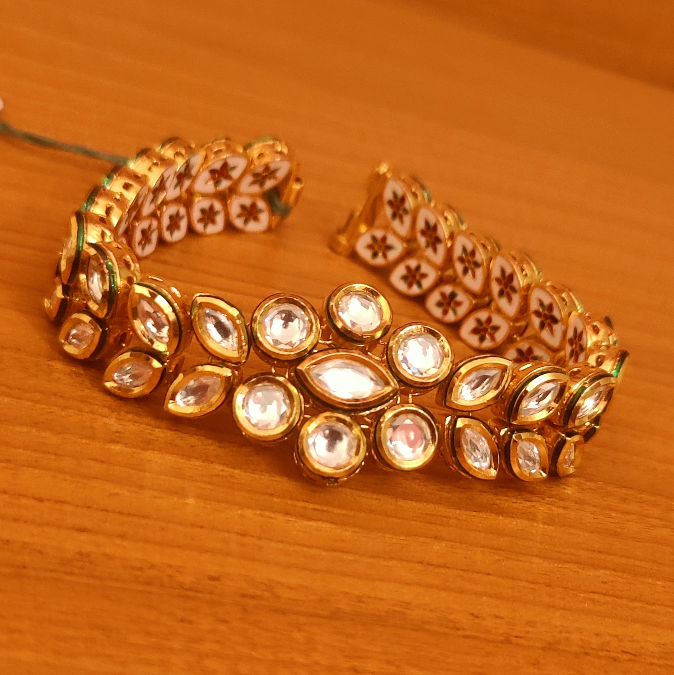 KUNDAN POLKI REAL GOLD LOOK MEENAKARI OPENABLE BRACELET