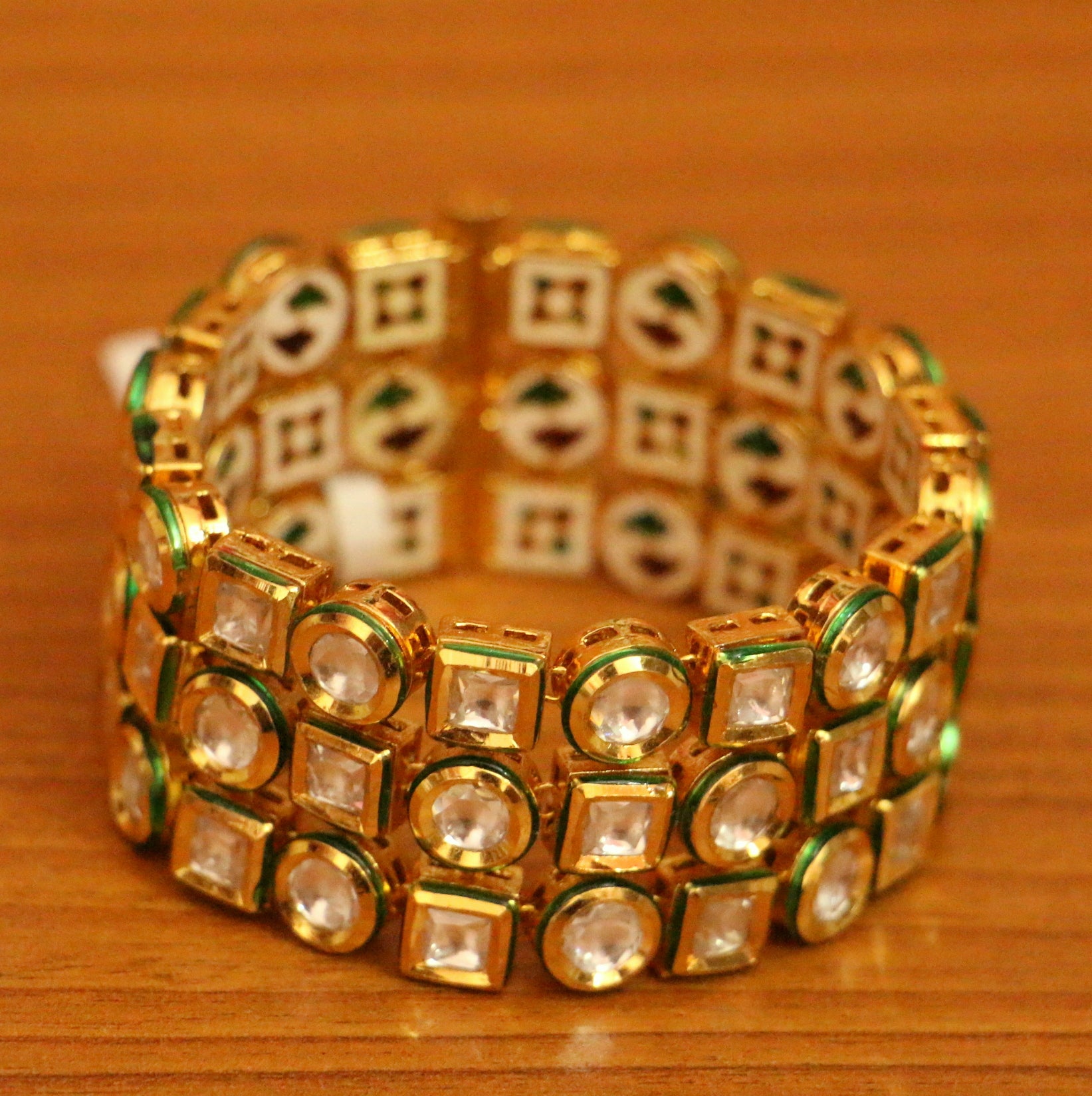 UNCUT KUNDAN POLKI MEENAKARI REAL GOLD LOOK OPENABLE BRACELET