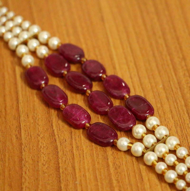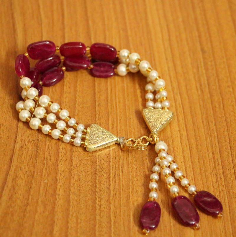 SEMI PRECIOUS RUBY & PEARL OPENABLE CHAIN BRACELET
