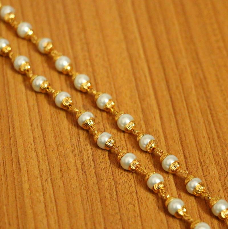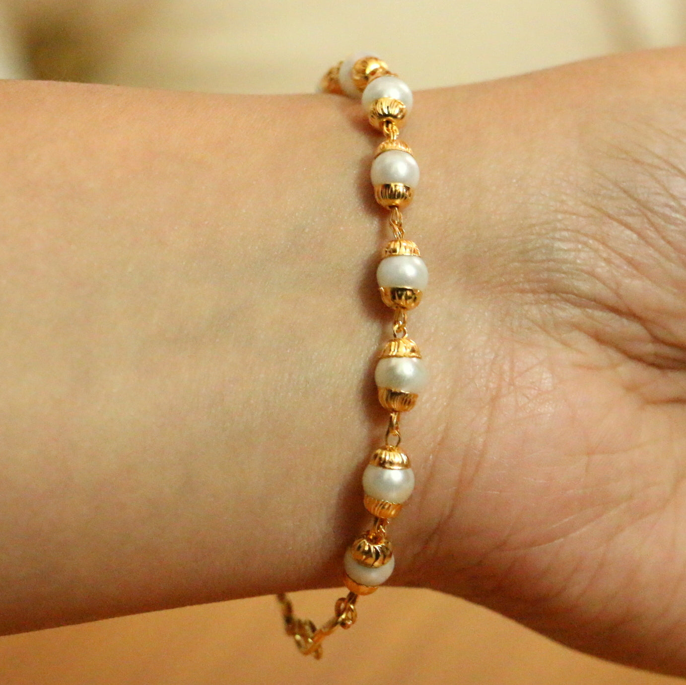 WHITE PEARLS GOLD PLATED CHAIN BRACELET