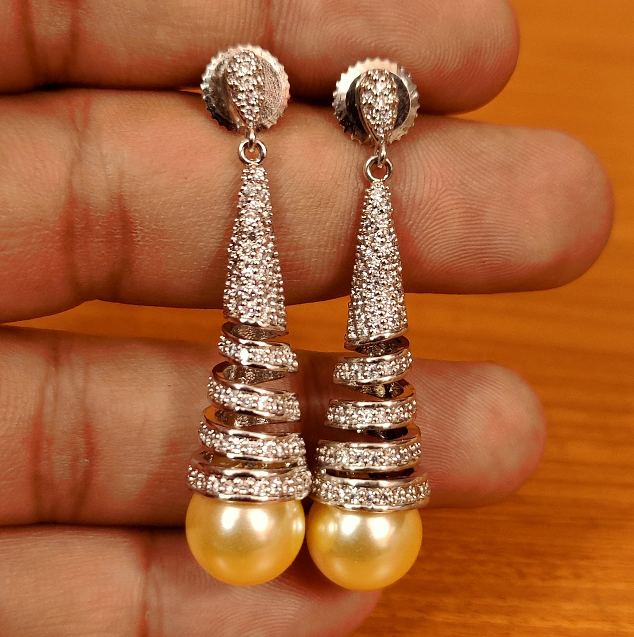 AMERICAN DIAMOND GOLD PLATED SPIRAL PEARL DANGLERS