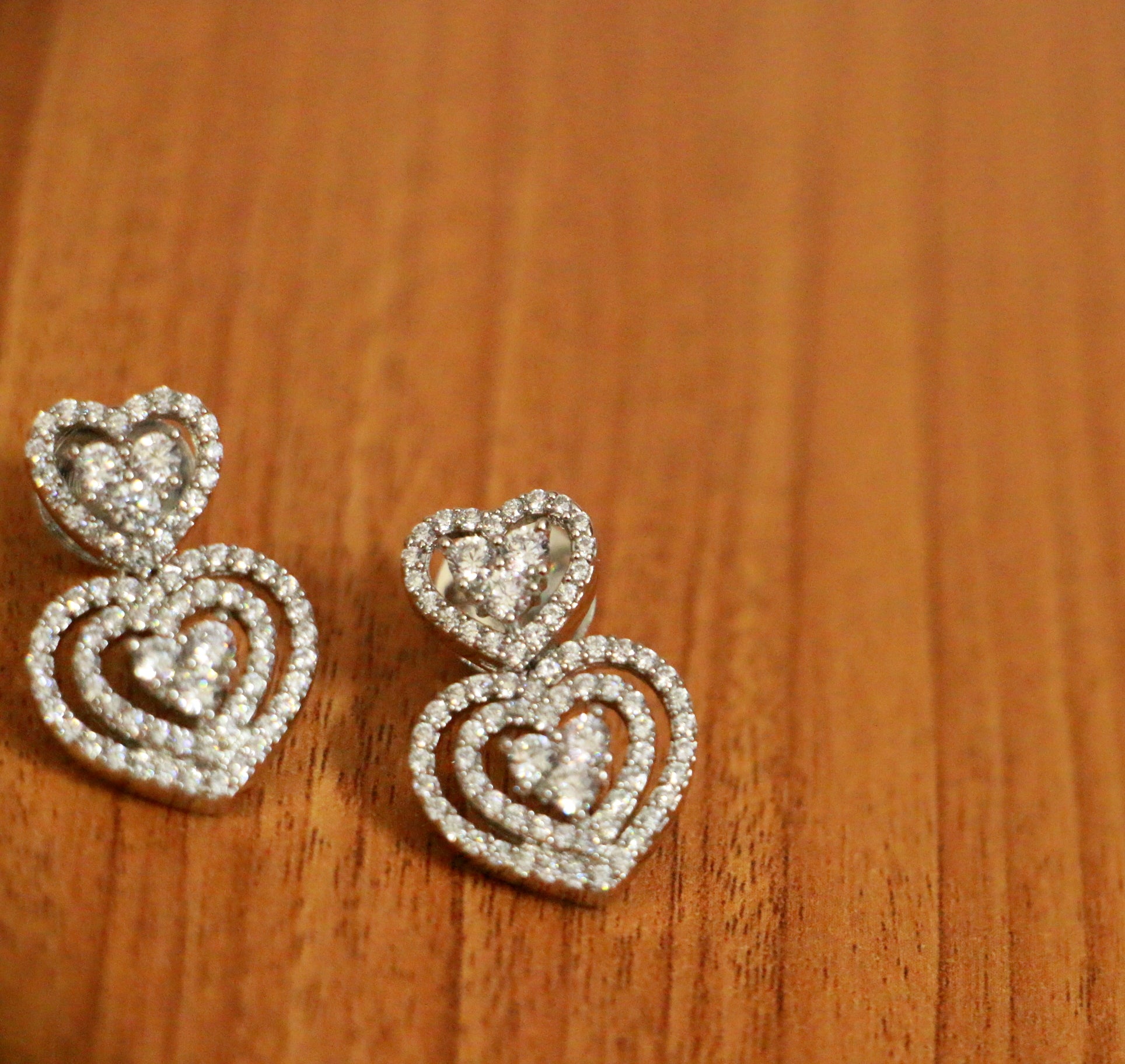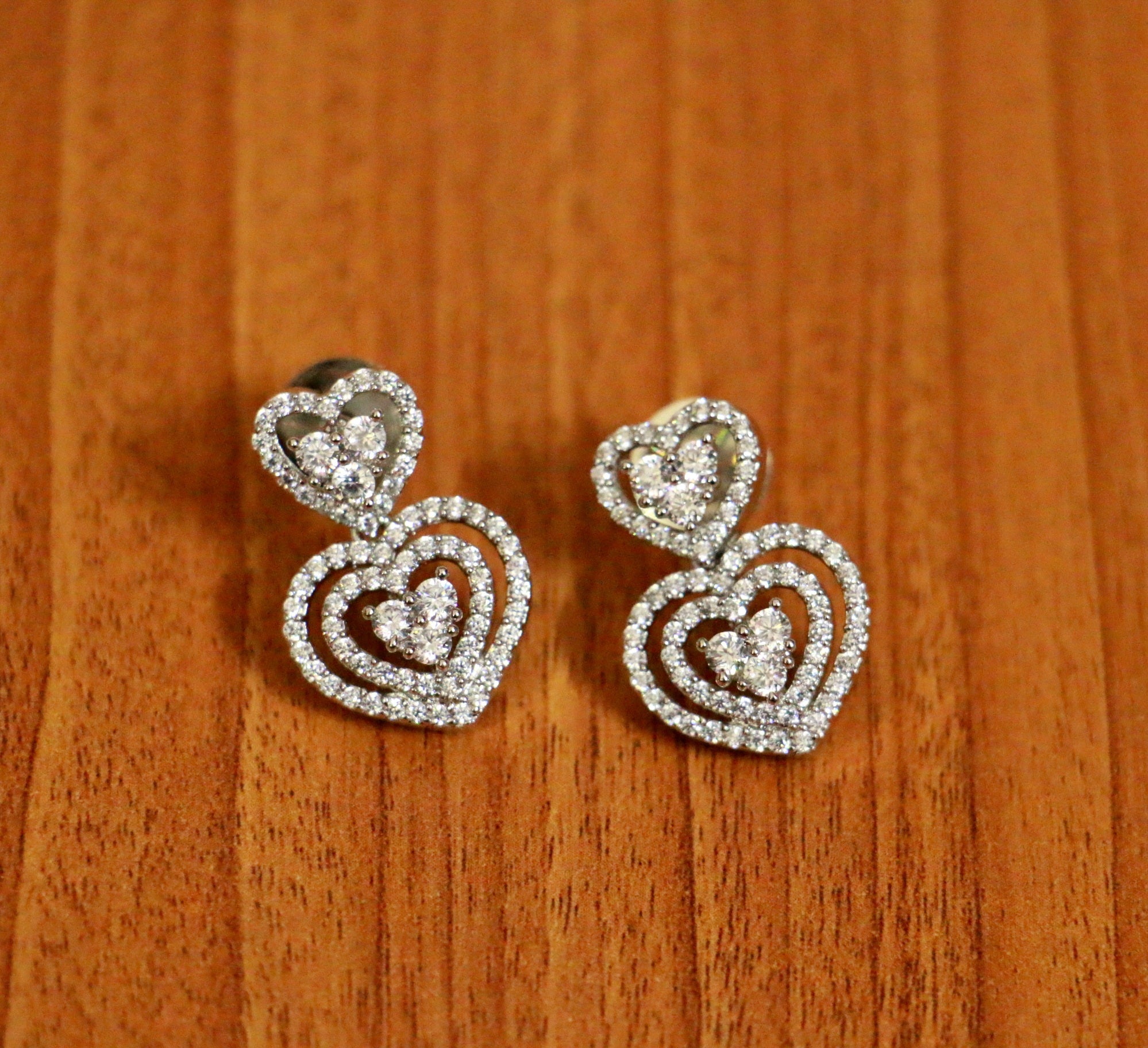 These heart pattern diamond look studs are handcrafted in silver alloy with imitation cz stones of very fine quality. These earrings are plated in white gold rhodium plating which gives the design a real jewelry look .