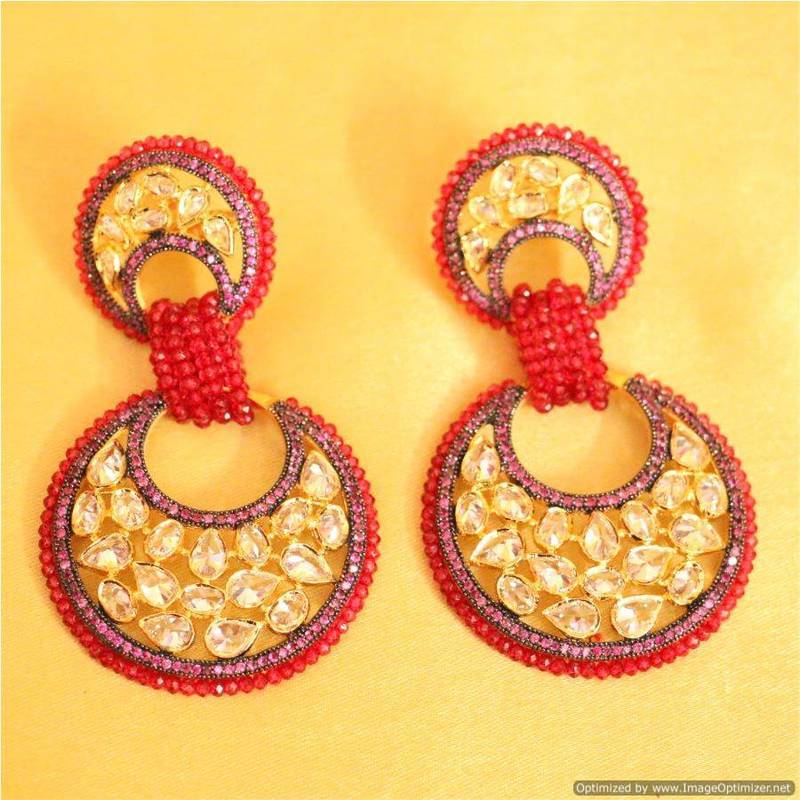 These beautiful Earrings are handcrafted in silver alloy with imitation ruby & semi precious american diamond of fine quality . These earrings are coated with 18 kt gold polish which give them a unique look . An absolutely stunning piece to own and are very light in weight.
