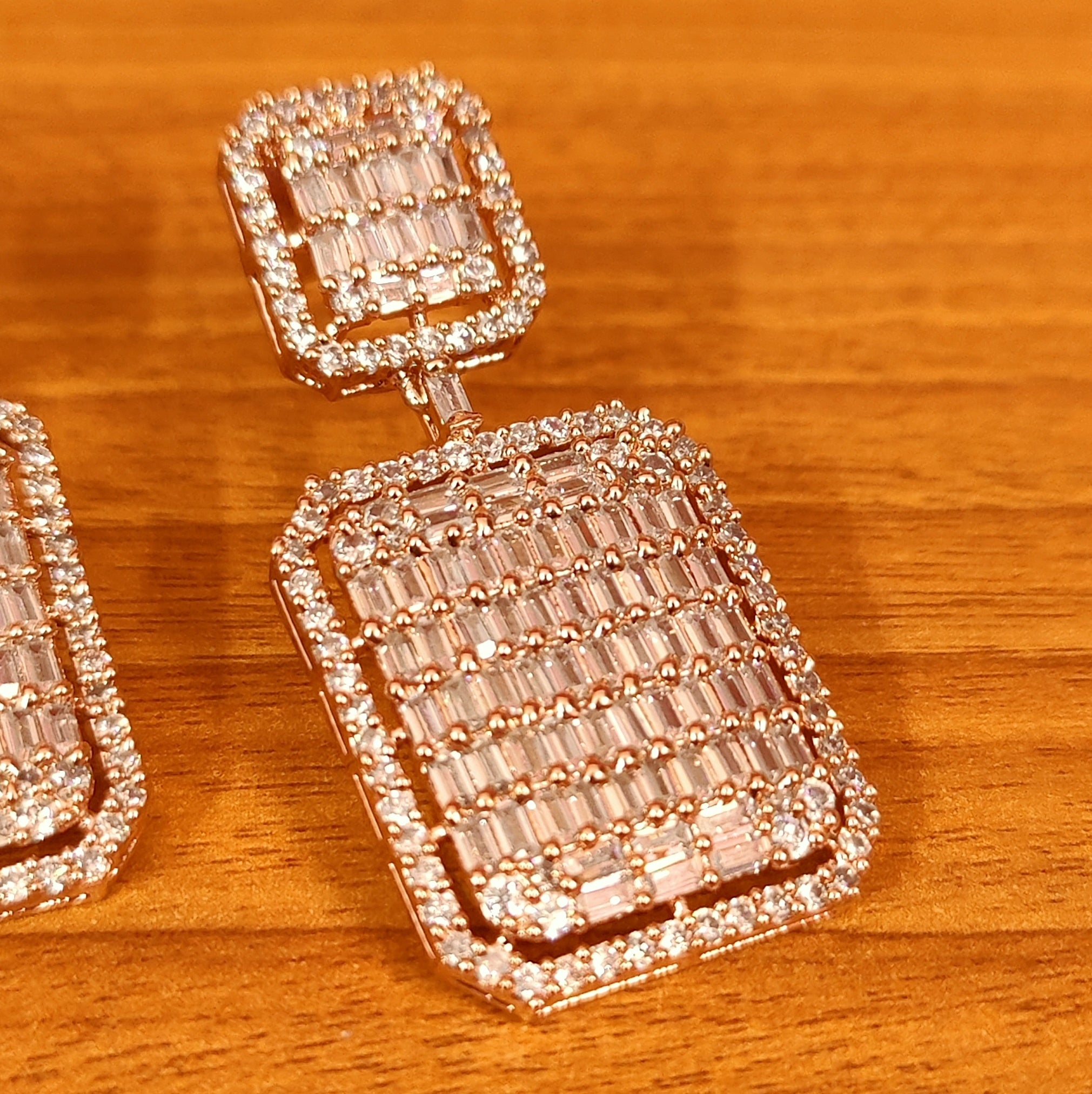 ROSE GOLD BAUGETTE STUDDED DIAMOND LOOK EARRINGS