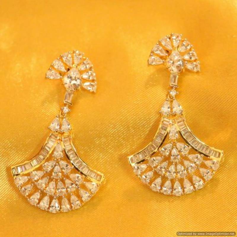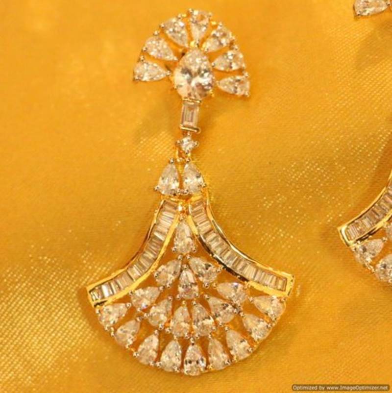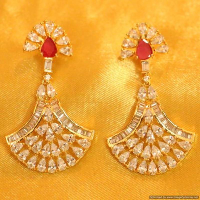 These diamond look danglers are handcrafted in silver alloy with imitation ruby colour quartz & cz stones of very fine quality. These earrings are plated in 18kt gold rhodium plating which gives the design a real jewelry look .