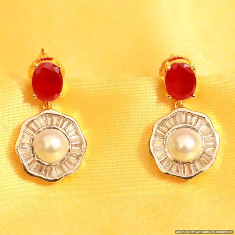 Ruby Diamond Look Pearl Earrings