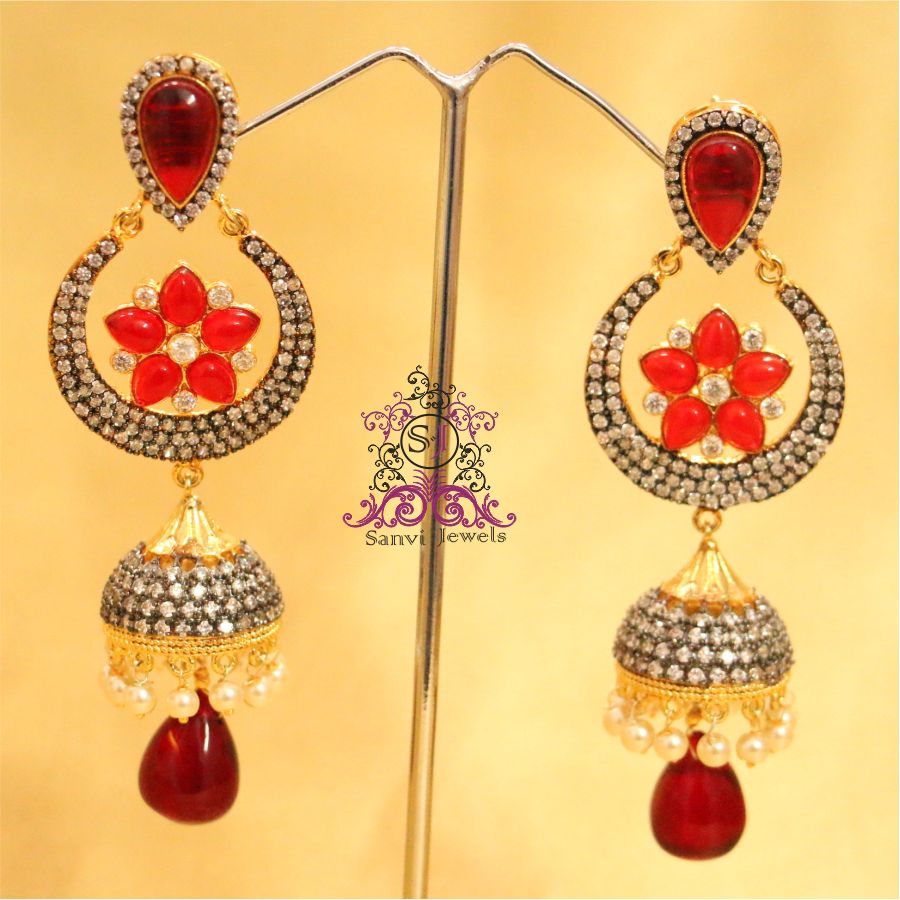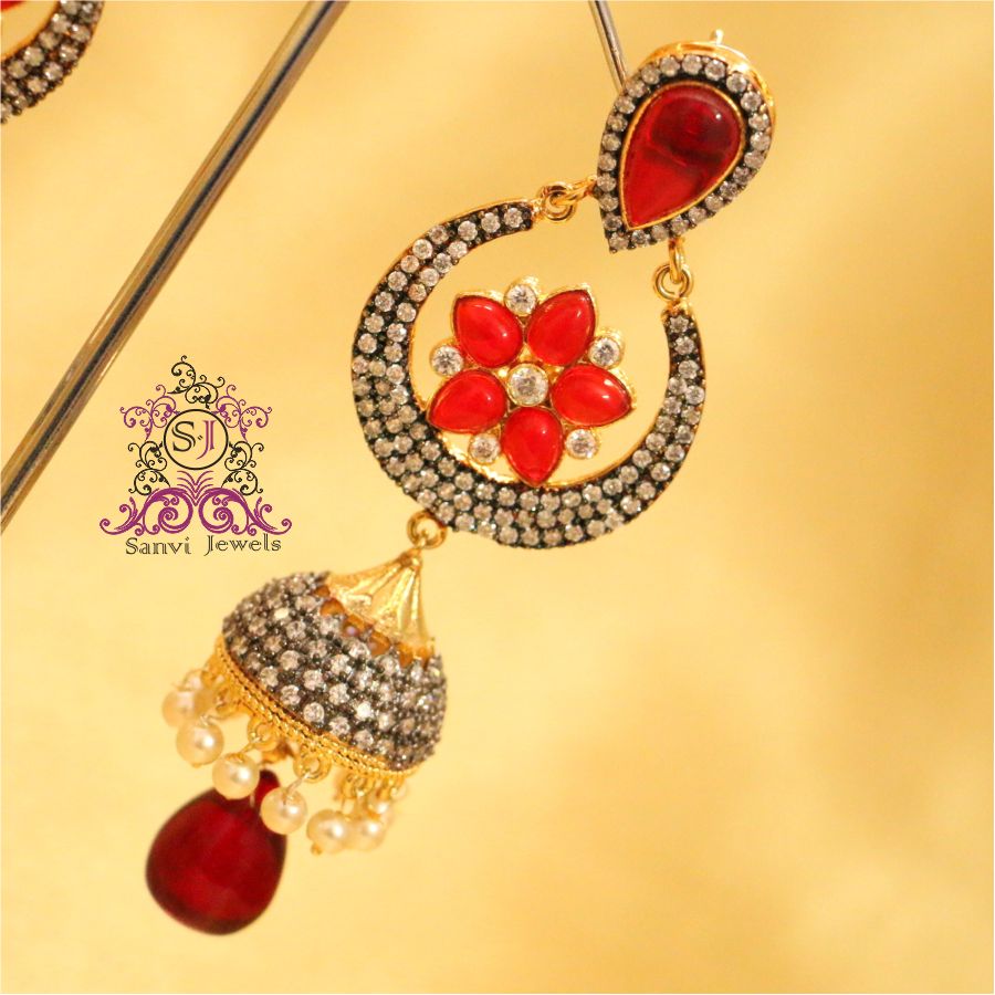 These beautiful Earrings are handcrafted in silver alloy with imitation Zircons of very fine quality and semi precious stones . These earrings are coated with 18 kt gold polish which give them a unique look . An absolutely stunning piece to own and are very light in weight.